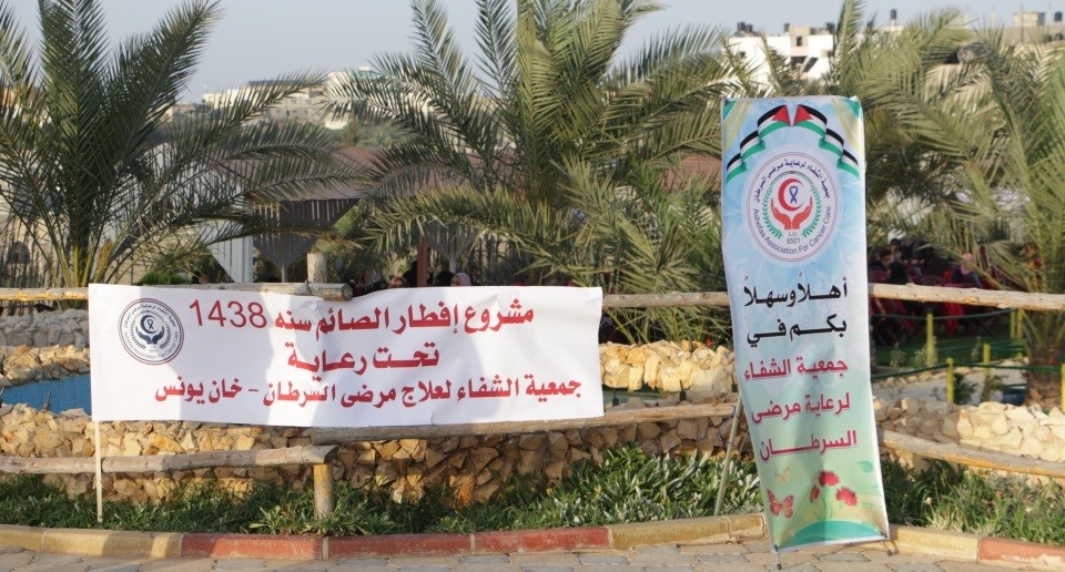 منتجع السعادة لاند أقيم افطار لعائلات مرضى السرطان تحت رعاية جمعية الشفاء لعلاج مرضى السرطان- خان يونس، وعنوان الجمعية برج صادق مقابل بنك فلسطين.