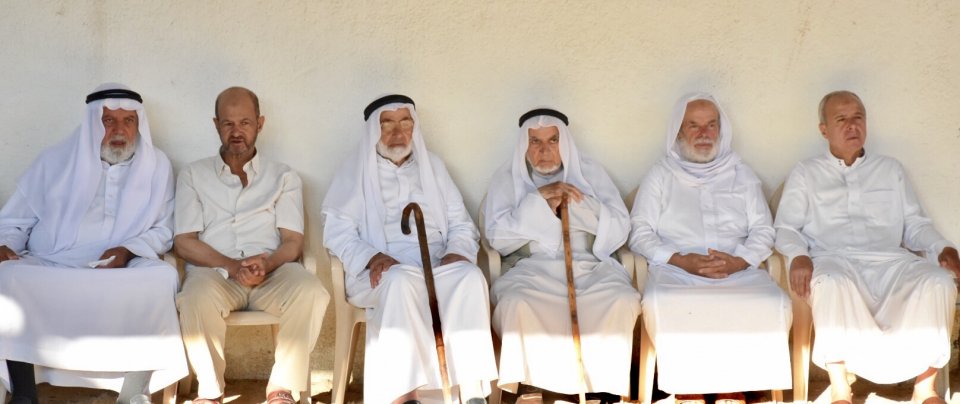 الحاج عوني حمدان الاغا، أ. هشام عثمان الأغا، أ.د. محمد رمضان الاغا،الحاج عدنان صالح الاغا، أ. ممتاز رمضان الأغا وابنه احمد