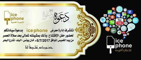 خان يونس- وسط البلد- أول شارع البحر- الأربعاء 06-07-2017- إفتتاح محل Ice Phone ، للجوالات، والصرافة، ادارة محمود جمعة شراب وشقيقه محمد وبلال الزيني