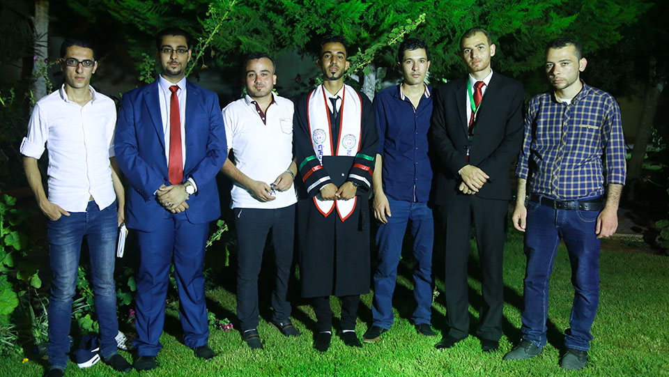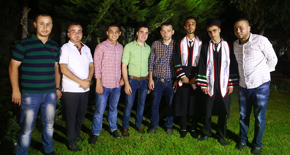 أ. إيناس أبو شاويش وكريمتيها، أ. سليم سمير الاغا، م. عماد خالد الأغا(رئيس مجلس إدارة جامعة فلسطين)، د. اكرم شعت، أحمد ابو شاويش، ا. يوسف نعيم الأغا، أ. عمرو صلاح الأغا