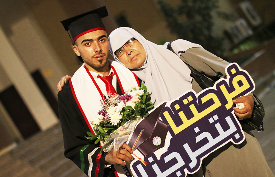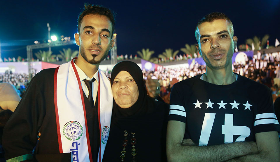 الأسير المحرر محمد زكريا الأغا ووالدته الحاجة أم ضياء، الخريج زكريا حازم الأغا