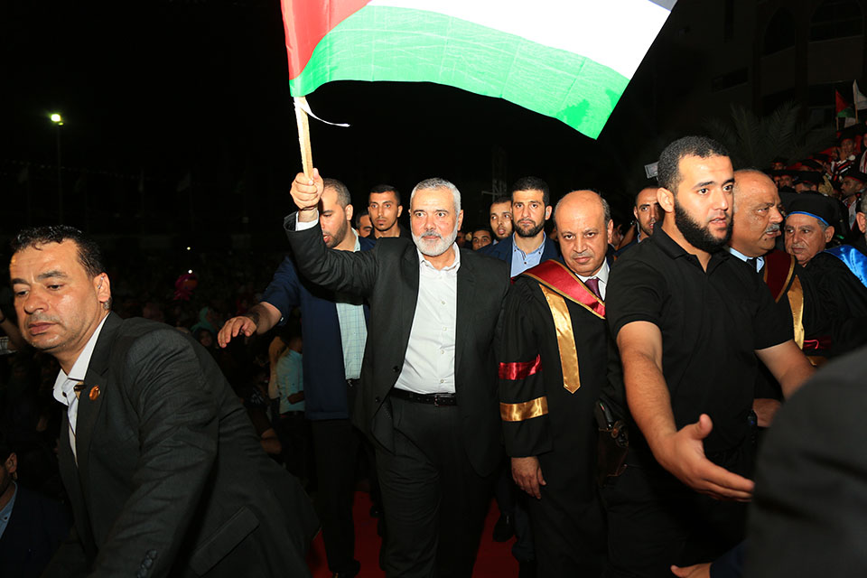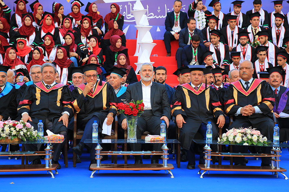 د. سالم صباح(رئيس جامعة فلسطين)، م. عماد خالد الأغا(رئيس مجلس ادارة جامعة فلسطين)، د. إسماعيل هنية، د. فاروق الافرنجي (رئيس مجلس أمناءجامعة فلسطين)، د. كمال الشرافي
