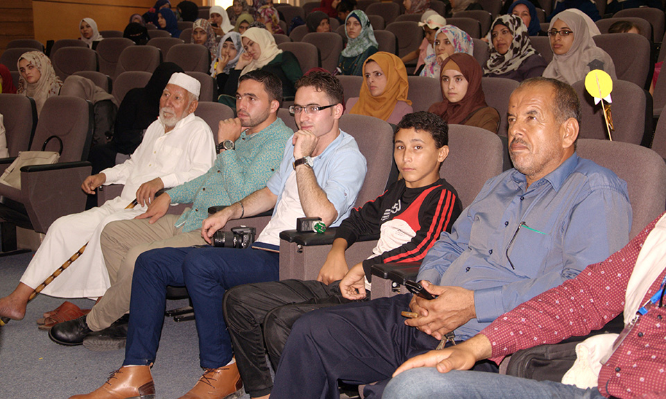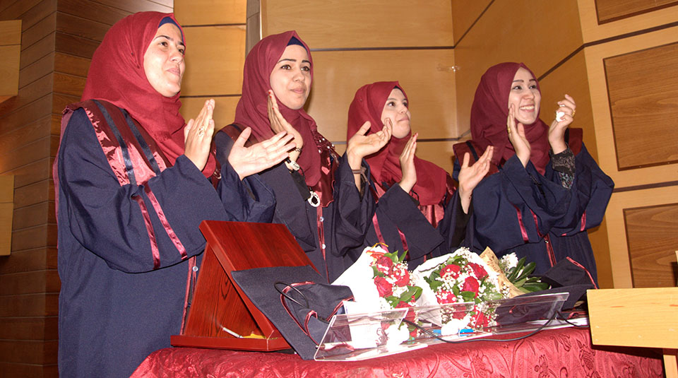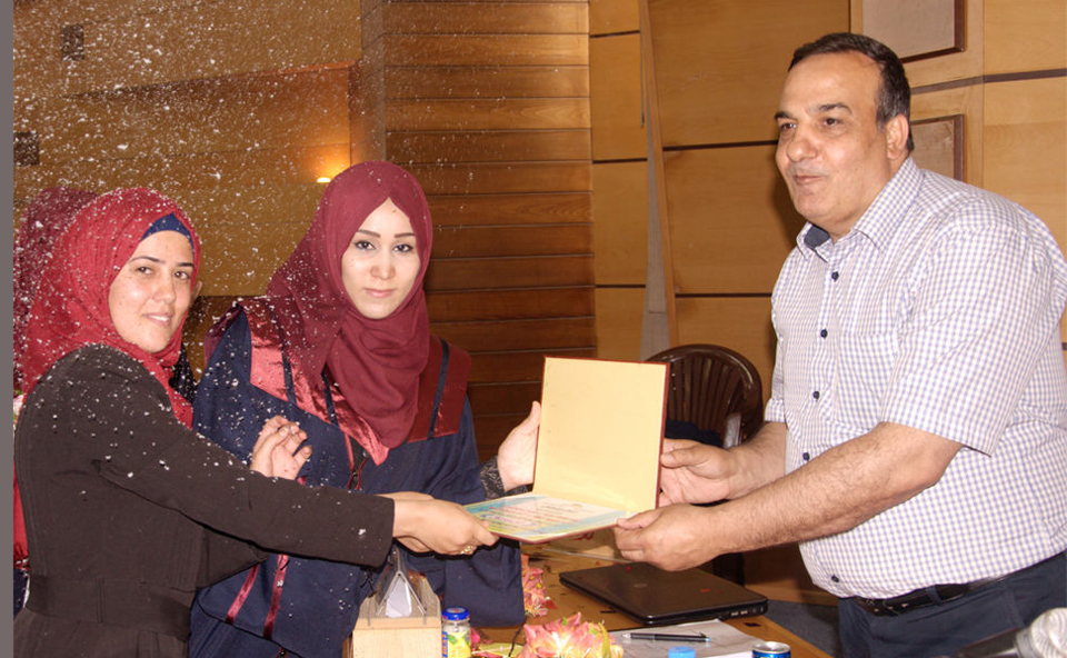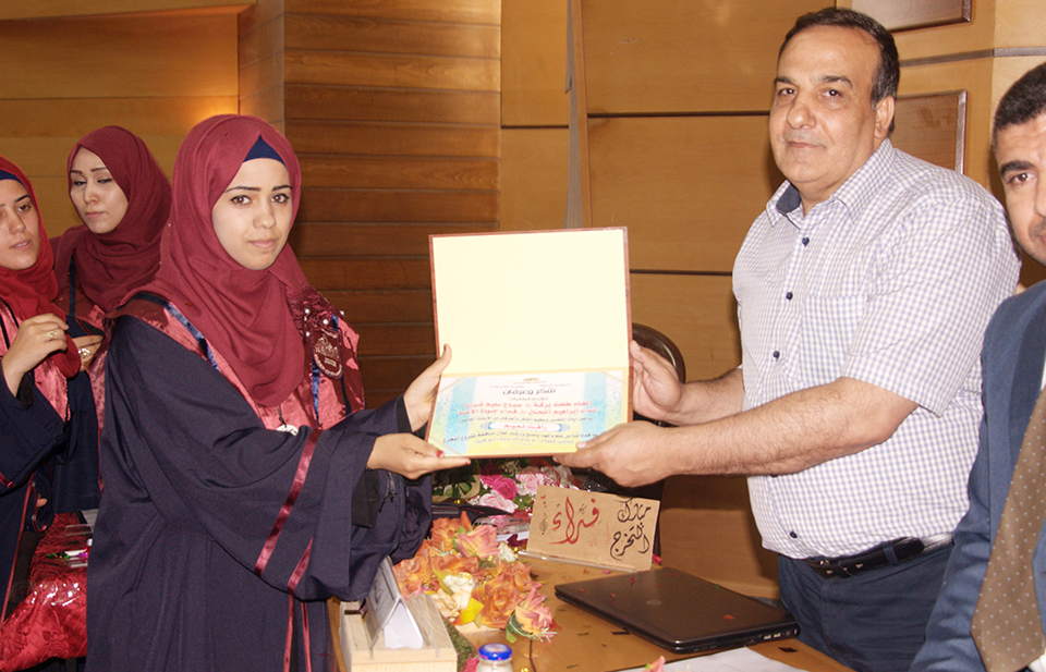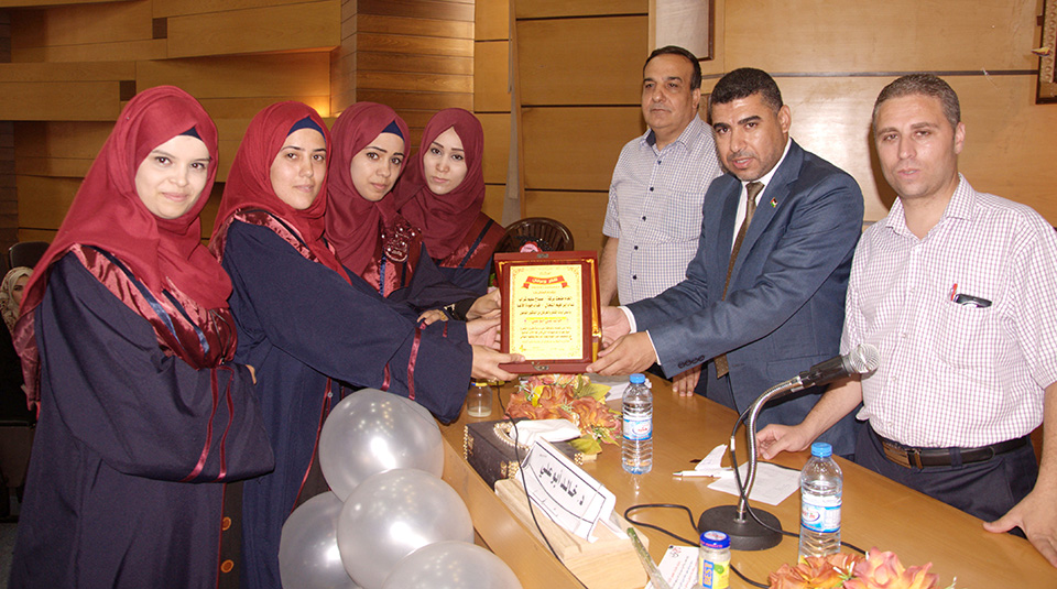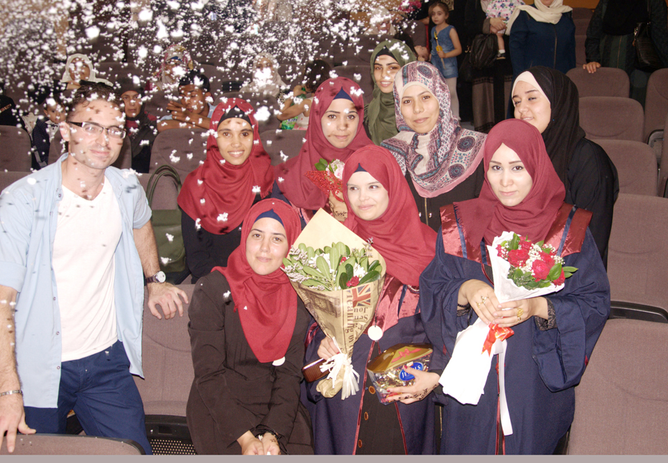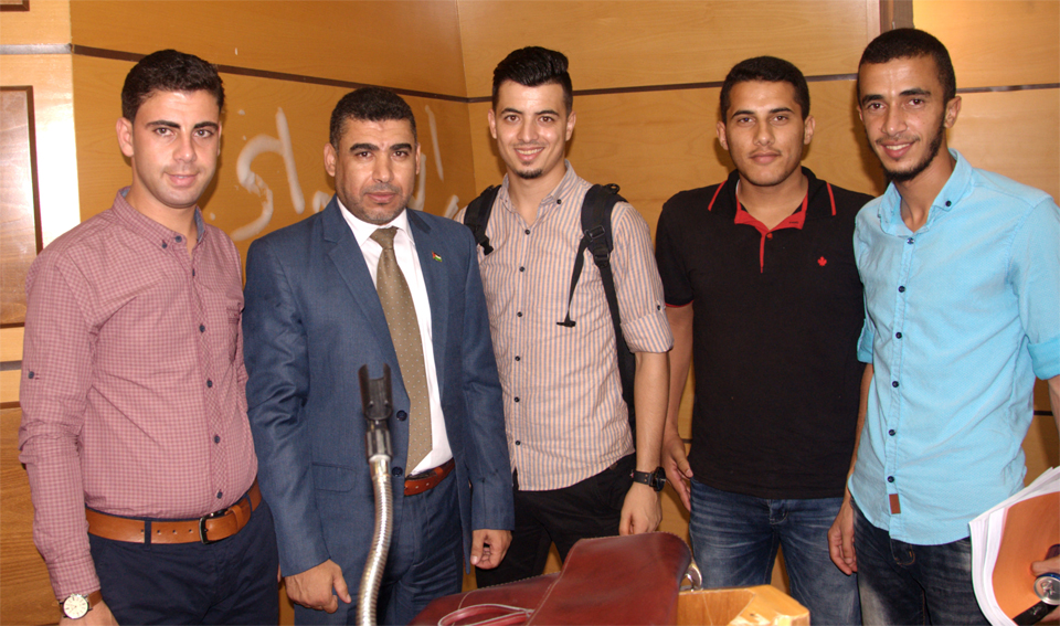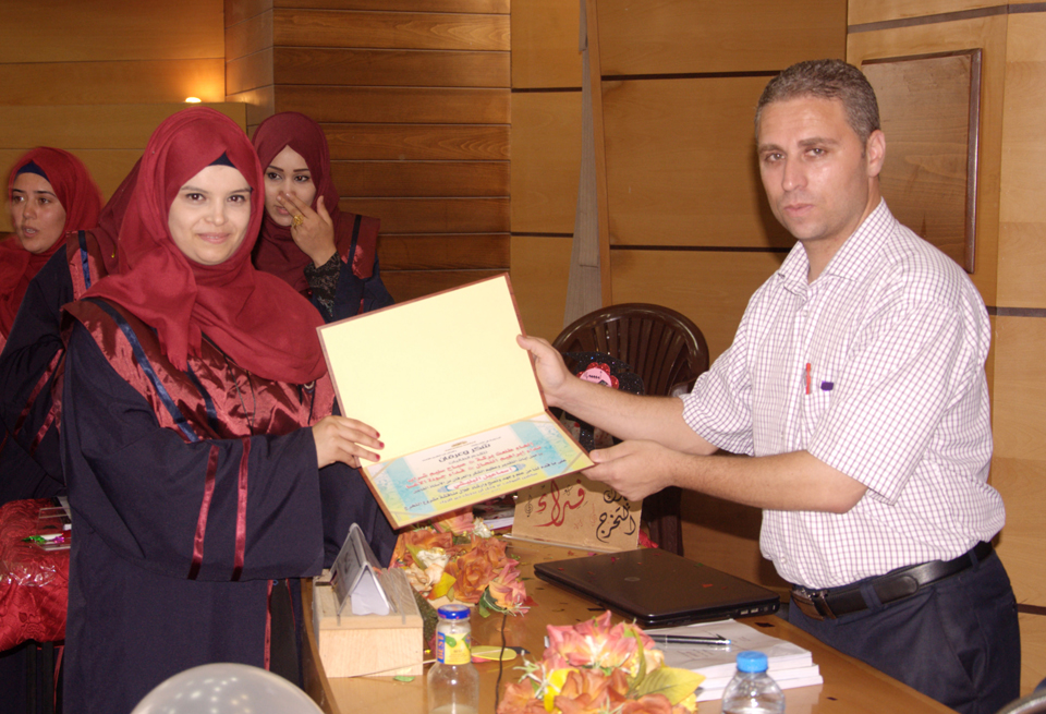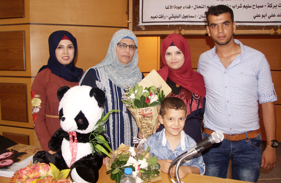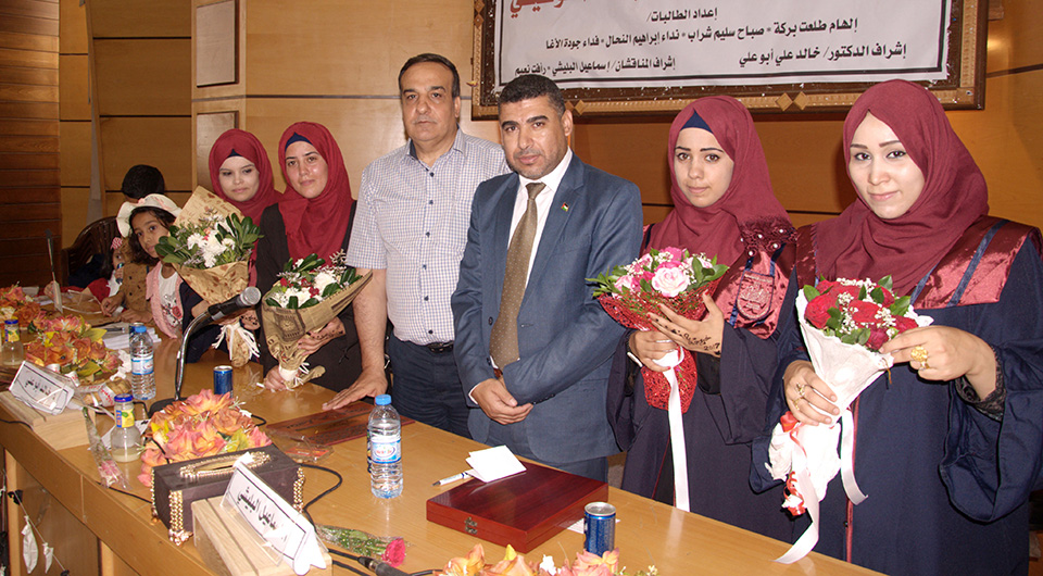 الطالبة فداء الأغا، الطالبة صباح سليم شراب، د. خالد علي أبو علي، أ. رأفت نعيم، الطالبة إلهام بركة، الطالبة نداء إبراهيم النحال