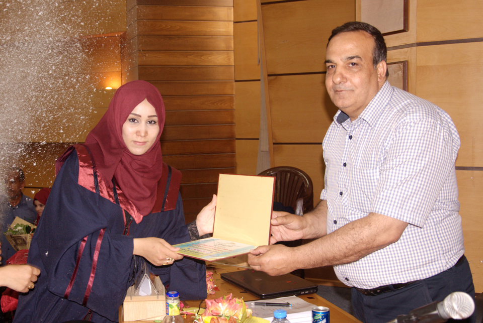 خان يونس- كلية العلوم والتكنولوجيا- الخميس 13-07-2017- مناقشة بحث تخرج الطالبة فداء جودة الأغا، تحت عنوان المناخ التنظيمي وعلاقته بالأداء الوظيفي،