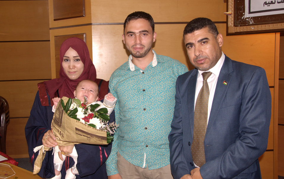 الطالبة وزوجها أ. عامر محمد الاغا نجله محمد