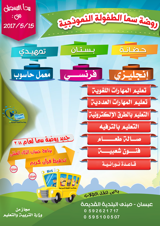 حضانة- بستان- تمهيدي- إنجليزي- فرنسي- معمل حاسوب