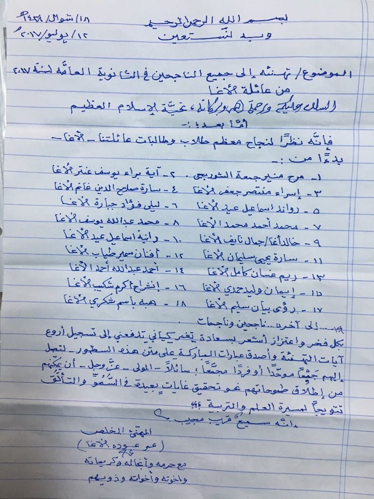 الرئيسة/متفرقات/تهنئة بالنجاح مقدمة من أ. أبو رامي متفرقات تهنئة بالنجاح مقدمة من أ. أبو رامي تاريخ النشر : الثلاثاء | 18-07-2017 | 09:00 8870 اضغط هنا للتعرف على المرحوم أ. عمر عودة إسعيد محمد سالم إبراهيم(بدوي) الأغا يمكنك تلقي أحدث الأخبار أول بأول بانضمامك لإحدى مجموعات الواتساب الخاصة بالعائلة من خلال الضغط هنـا اظهر المزيد