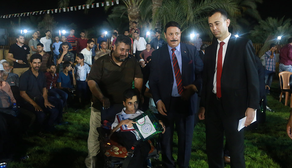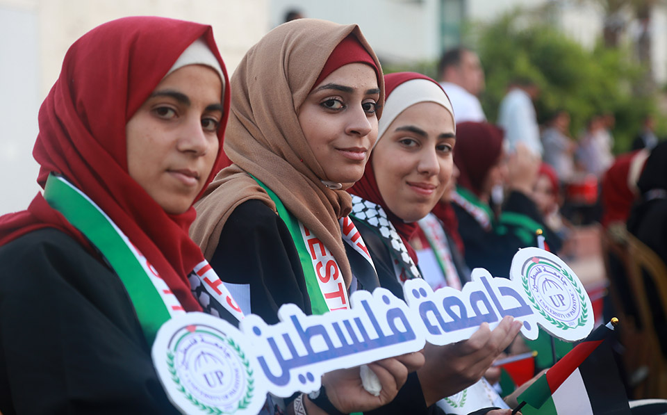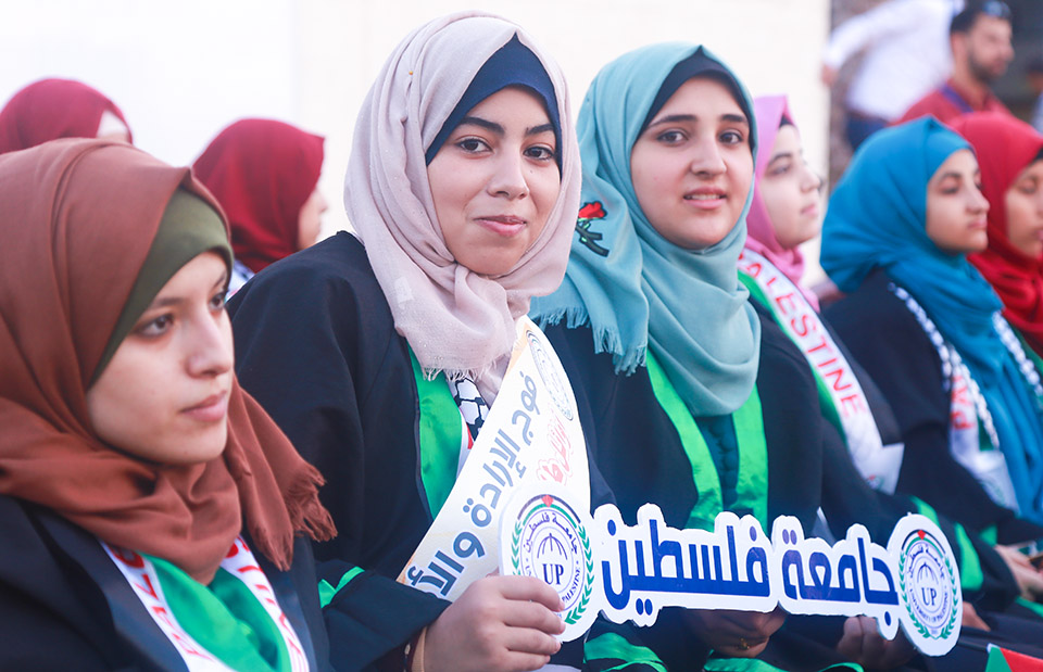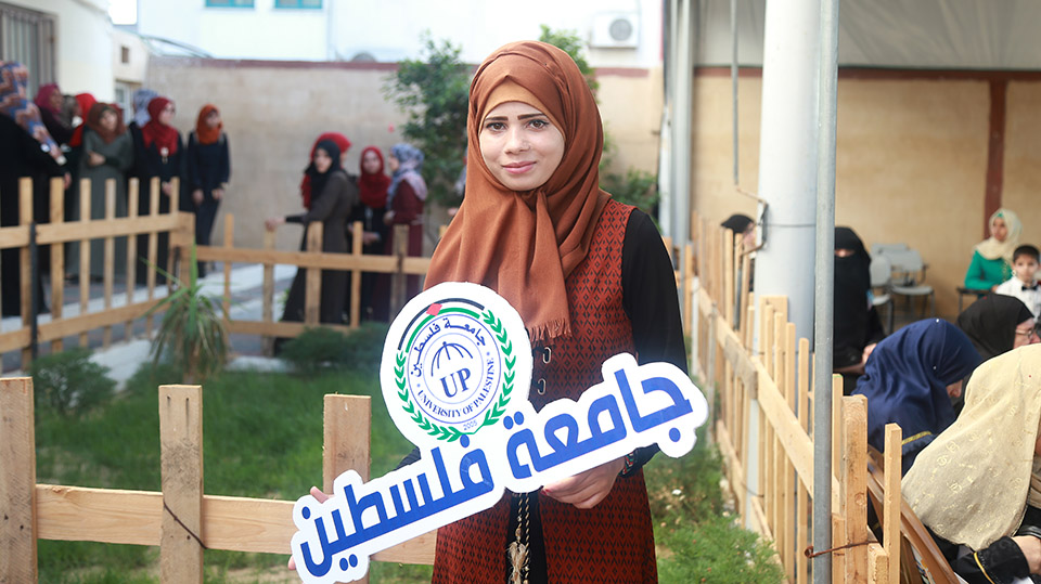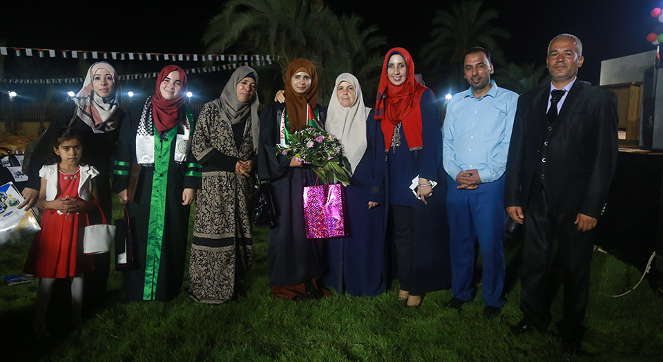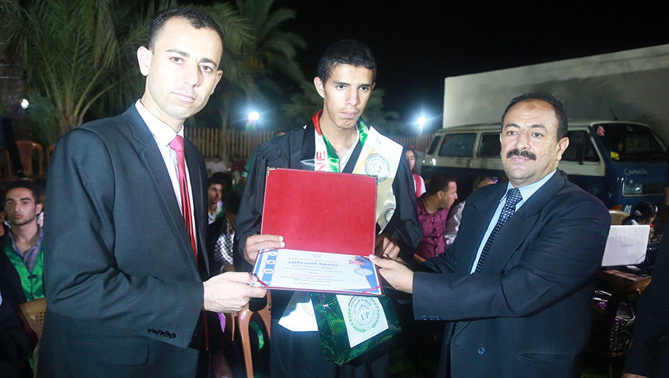 وكما تم تكريم الطلبة الناجحين من ذوي الحاجة، وخلال الحفل قدم م. عماد خالد الأغا (رئيس مجلس إدارة جامعة فلسطين) باقة ورد وهدية، إضافة إلى منحة دراسية كاملة للطالبة وردة علي الأغا.