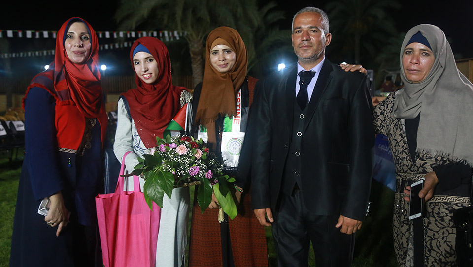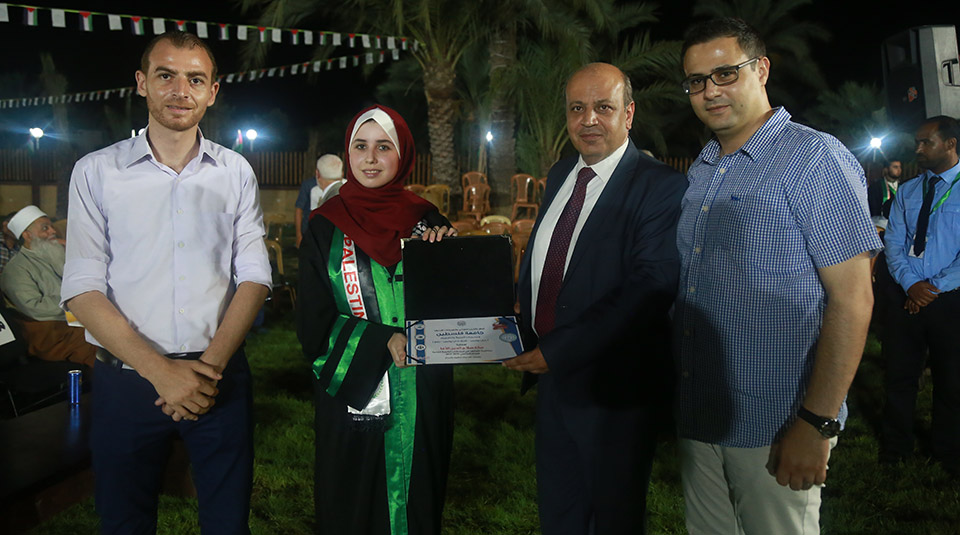 أ. أبي سفيان الأغا، م. عماد خالد الأغا، الطالبة سارة صلاح الأغا، أ. سليم سمير الأغا
