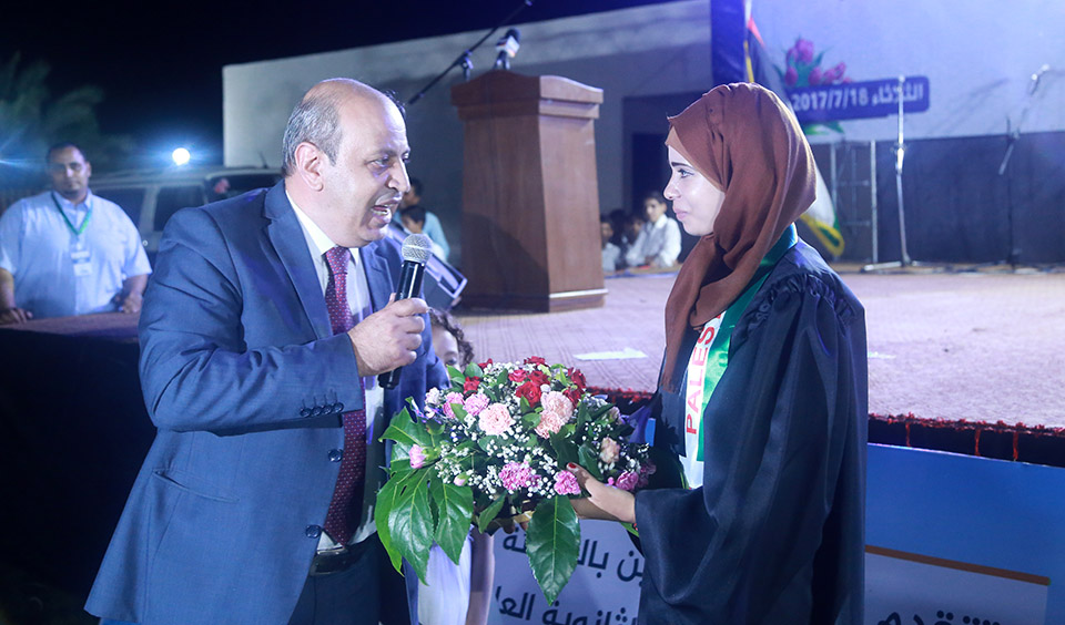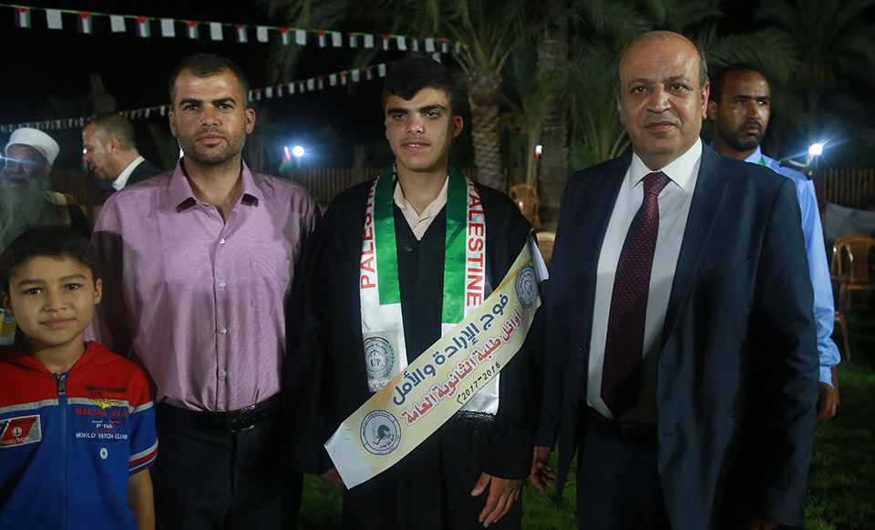 خان يونس- جامعة فلسطين- الثلاثاء 18-07-2017- تحت رعاية جامعة فلسطين، مديريات التربية والتعليم (خان يونس، شرق خان يونس، رفح)، اقامت حفل تكريم أوائل طلاب الثانوية العامة، للعام الدراسي 2016-2017، بعنوان الإرادة والأمل.