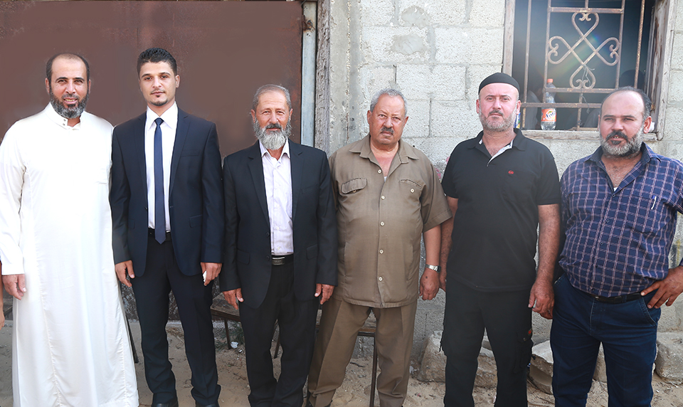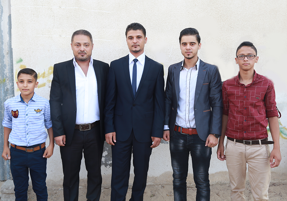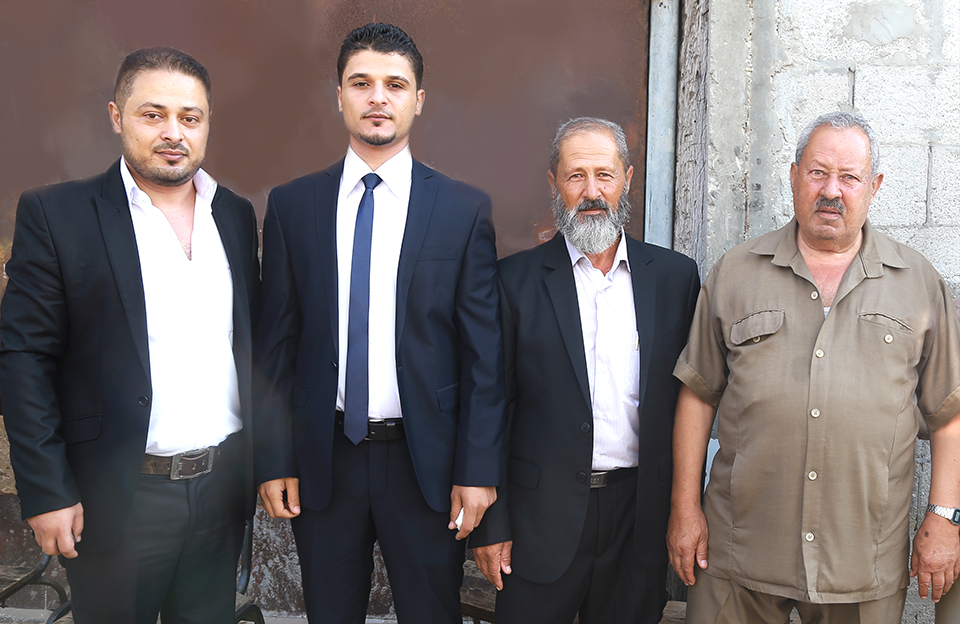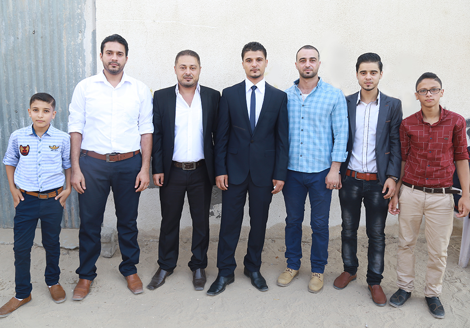 أ. المعتصم بالله خليل الأغا، السيد فؤاد وافي، السيد إيهاب وافي، السيد محمد وافي، م. محمد كوارع(زوج شقيقة العريس)