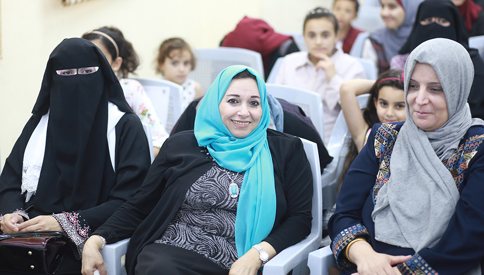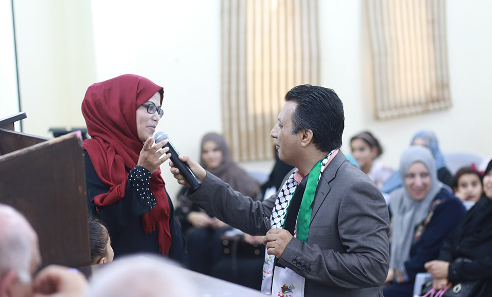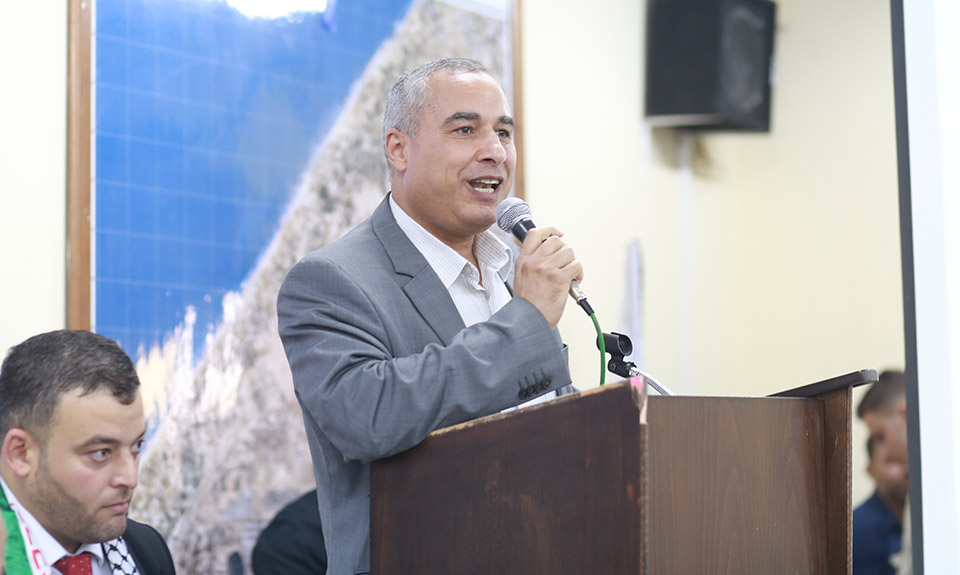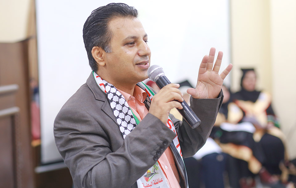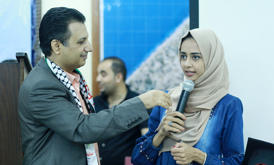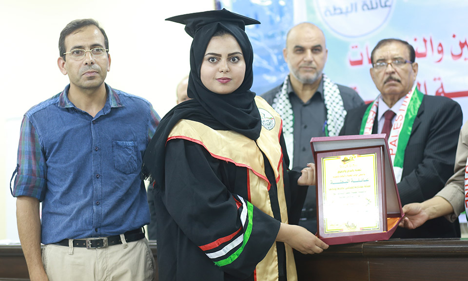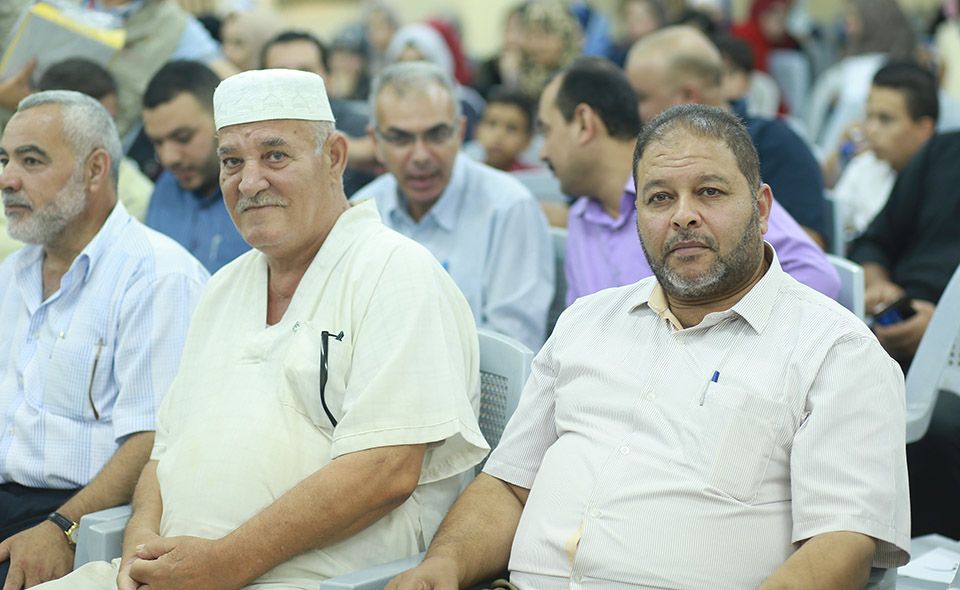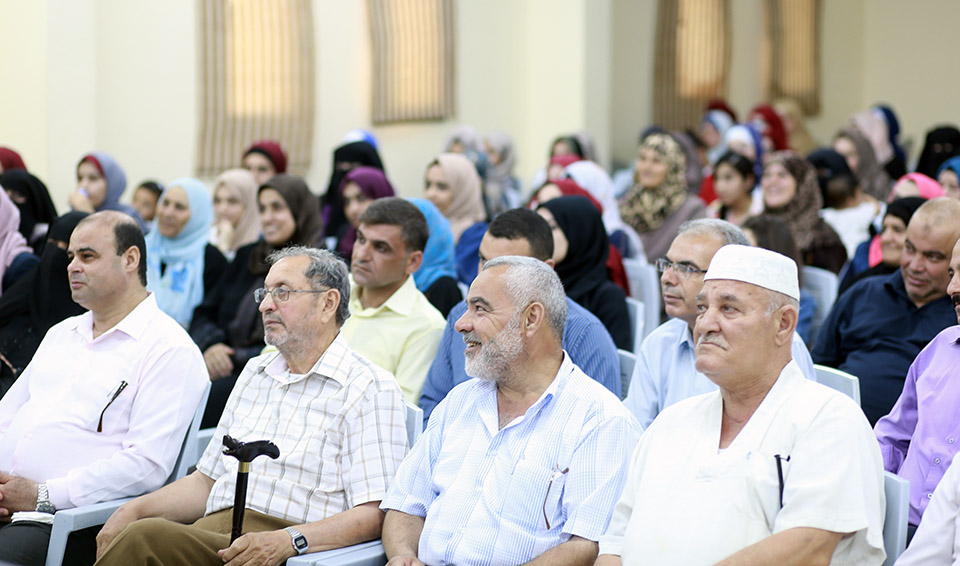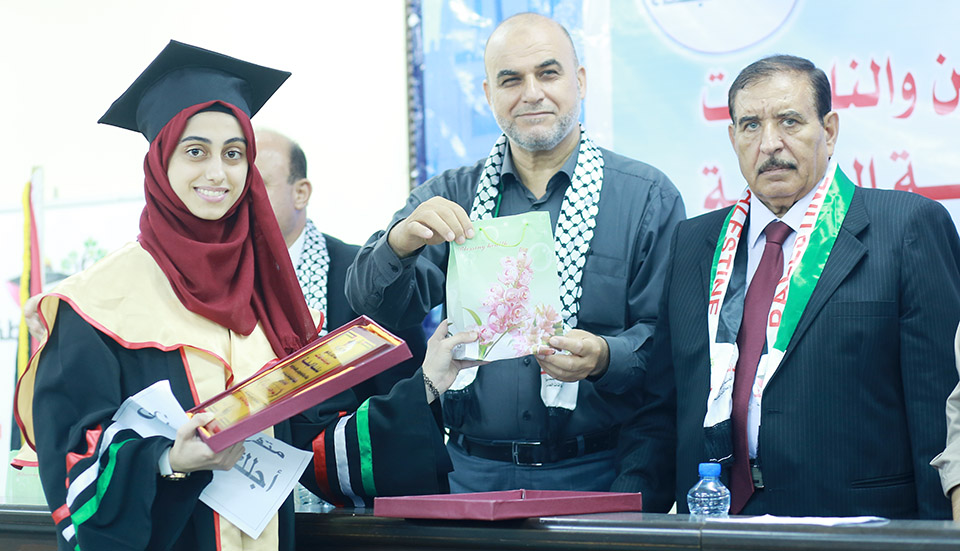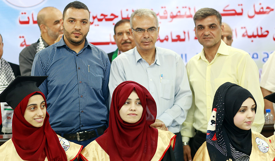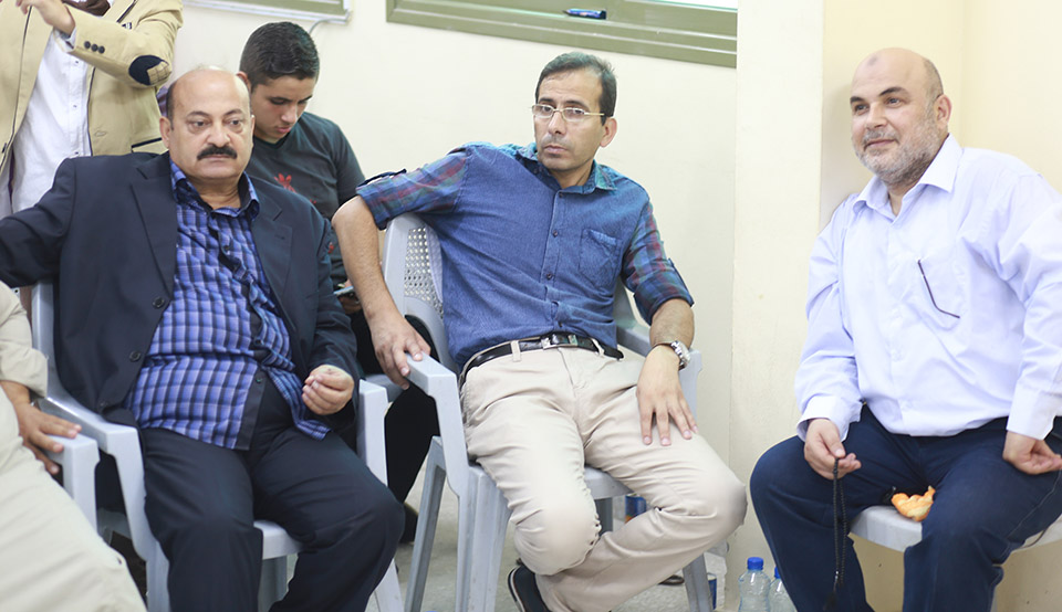 وفد مشارك من جامعة غزة، وقد قدم التهنئة وعدد من المنحة للطلبة المتفوقين
