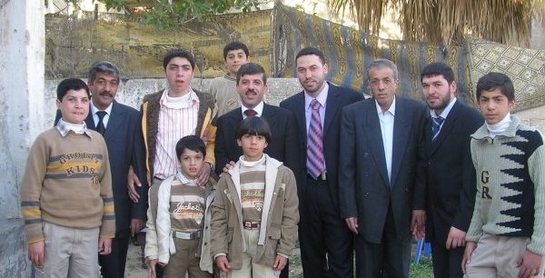الحاج نايف حمدان فالوجى أبو محمد، وعلى اليمين الشاب محمد نزيه(ابن عم العروس)