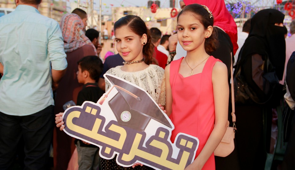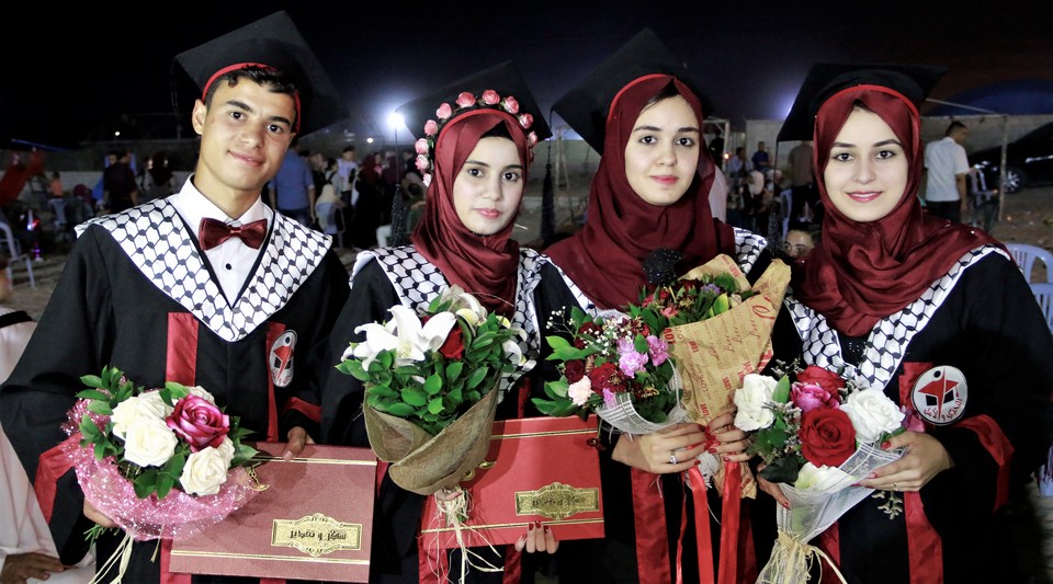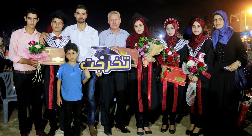 الخريجون: ربيع حمادة الاغا وشقيقته علا، أسيل حاسي الأغا، ألاء سعيد الأغا