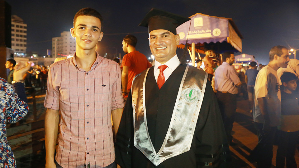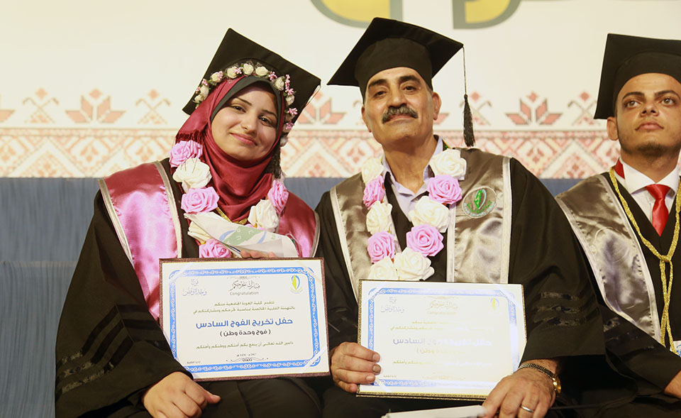 ميناء غزة- الخميس 27-07-2017- تخرج الطالب أيمن محمود زكريا حافظ الزيني، في كلية العودة الجامعية، فوج وحدة وطن.