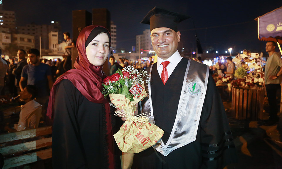 الخريج وزوجته أ. بسمة محمد صالح الأغا