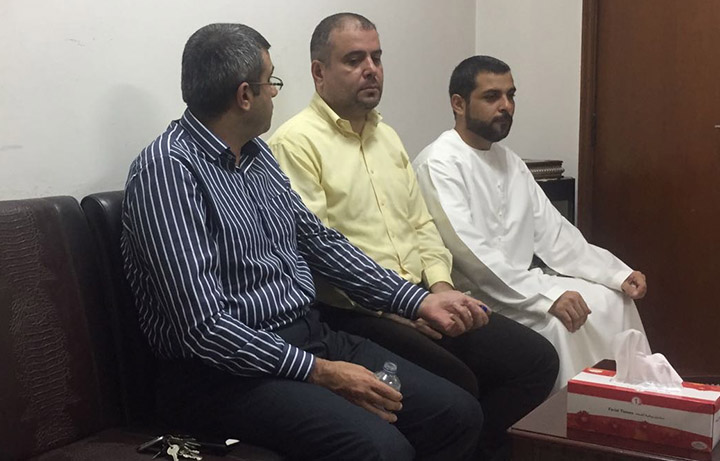 د. جهاد عودة رئيس قسم الهندسة المعمارية بجامعة عجمان للعلوم والتكنولوجيا يتوسط الشقيقان حسام ومحمد عثمان