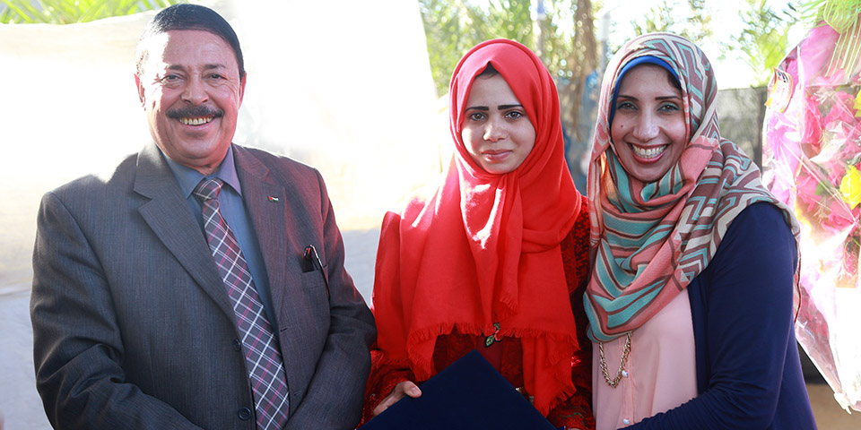 مواصي خان يونس- الثلاثاء الموافق 01-08-2017 قام وفد من جامعة فلسطين بزيارة منزل عائلة الطالبة وردة علي فتحي الأغا، التي تعاني من مرض السرطان، وخلال الزيارة تم تقديم منحة دراسية كاملة في تخصص الصحافة والإعلام، وبدورها شكرت عائلة الطالبة الوفد الزائر، مثمنة دور الجامعة للنهوض بالواقع المجتمعي والإنساني.