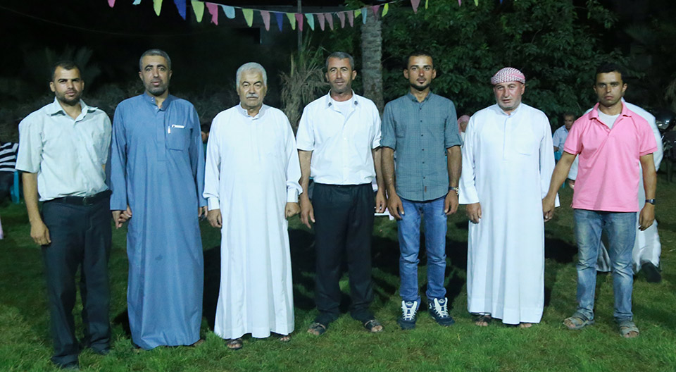 السيد روبين عبدالرحيم عودة الأغا، أ. جمال نايف الأغا، العريس، أ. محمد عودة الأغا(عم العريس)، أ. محمد عبدالرحيم الأغا، أ. تميم فالوجي الأغا، أ. زيدون(شقيق العريس)
