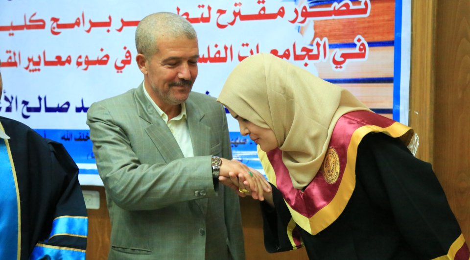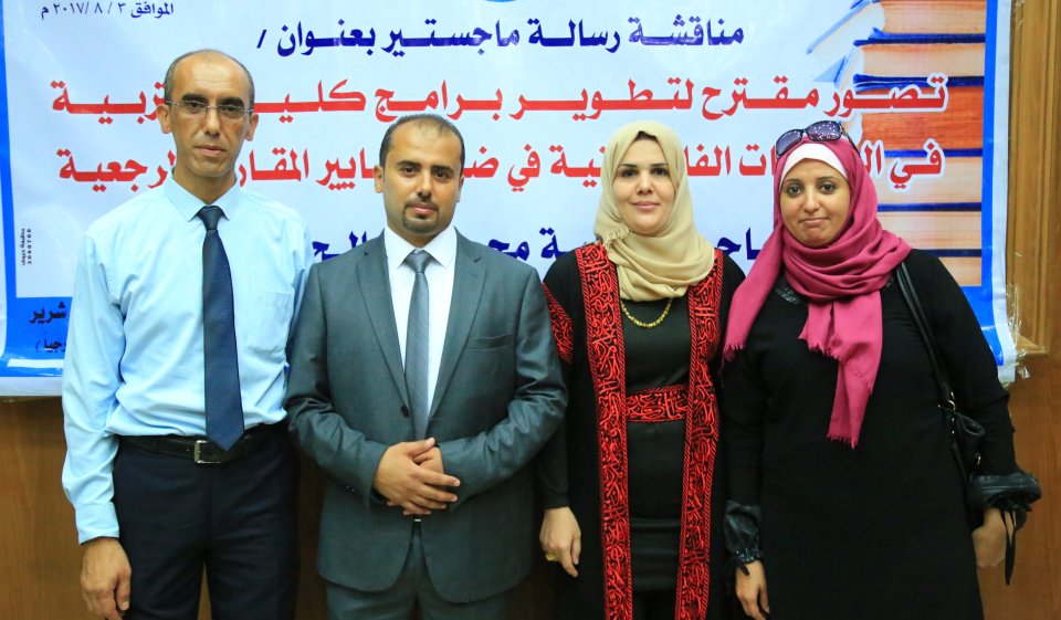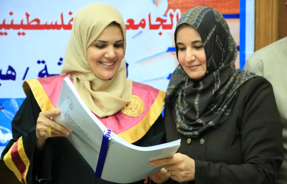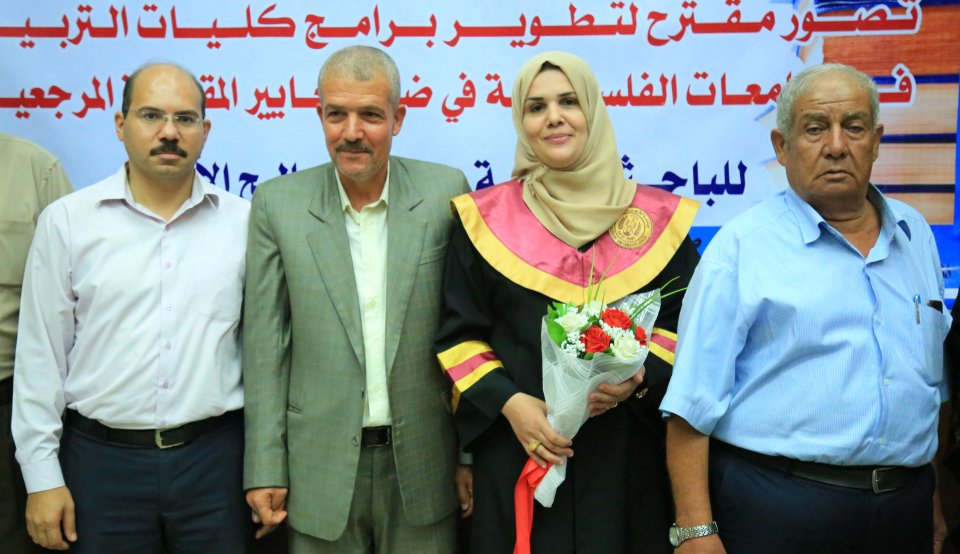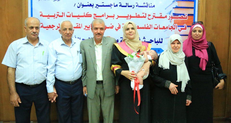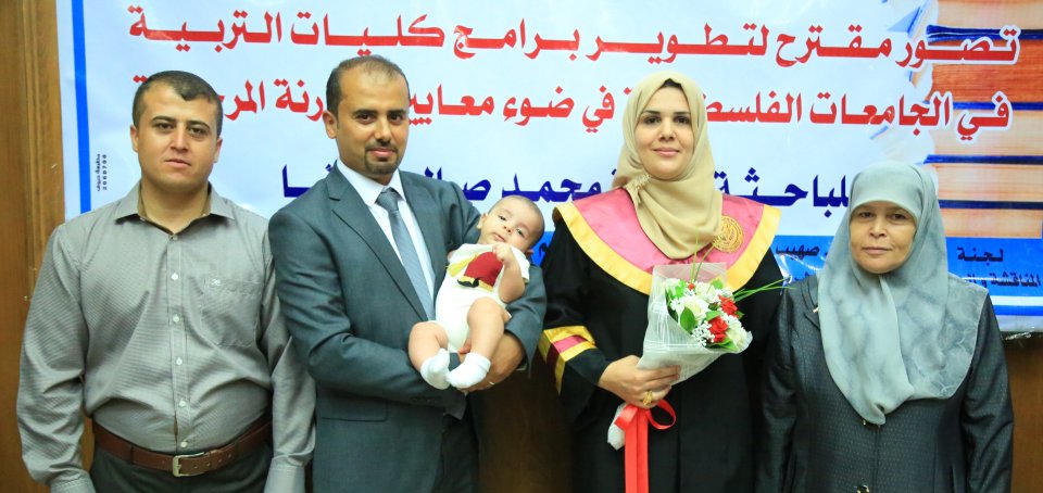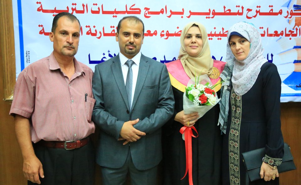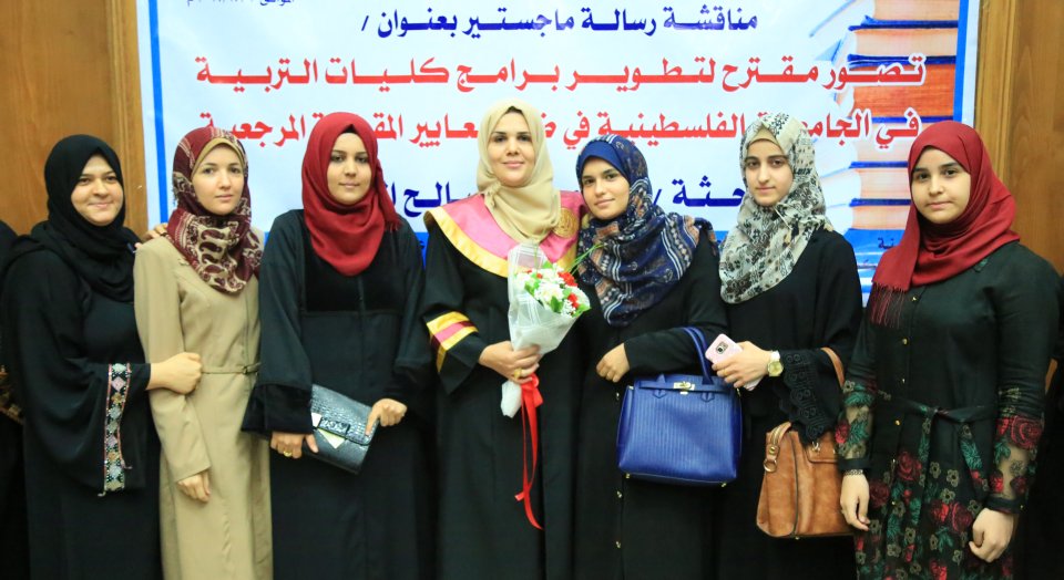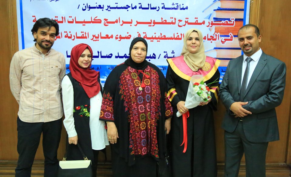 قاعة بيسان- جامعة الأزهر غزة- عمادة الدراسات العليا- كلية التربية- الخميس الموافق 3-8-2017، الباحثة هبة محمد صالح الاغا تنال درجة الماجستير في التربية- تخصص اصول التربية بعنوان: