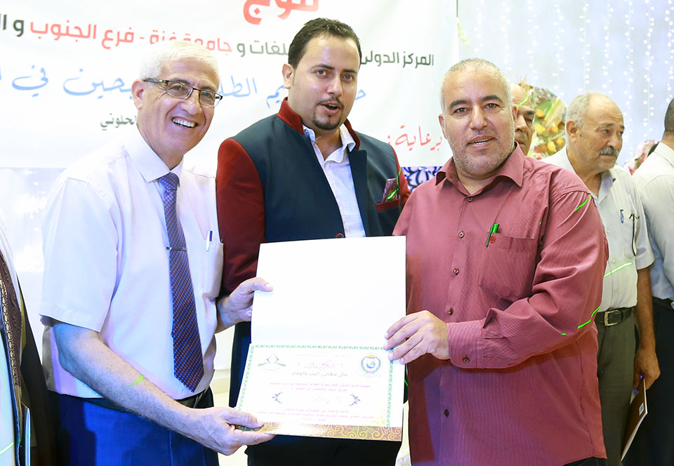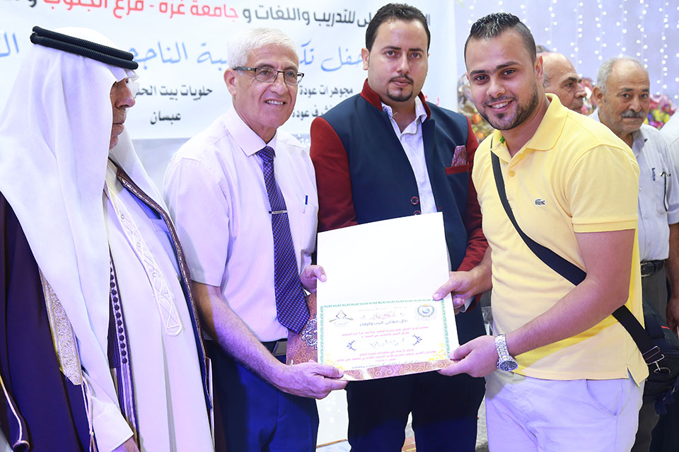 صالة نور بالاس- يومي الإثنين والثلاثاء (07،08)-08-2017 المركز الدولي للتدريب يكرم طلبة الثانوية العامة في محافظة خان يونس كرم المركز الدولي للتدريب واللغات وبالتعاون مع جامعة غزة فرع الجنوب والمركز السعودي للثقافة طلبة الناجحين الثانوية العامة 2017م في محافظة خان يونس، وأقيم حفل التكريم في قاعة وصالة نور بالاس شرق خان يونس . بحضور الأستاذ عصام فتحي أبو خليل- مدير المركز الدولي للتدريب واللغات، و عبد الجليل صرصور نائب رئيس مجلس إدارة جامعة غزة ، والطلبة المحتفى بهم وذويهم.