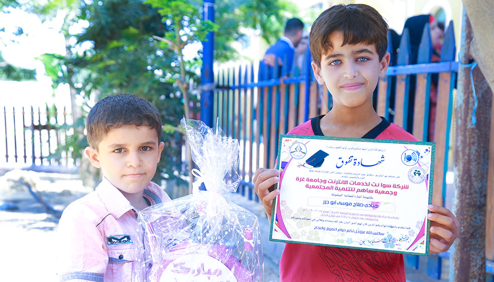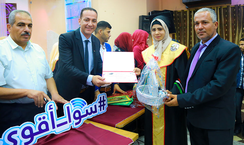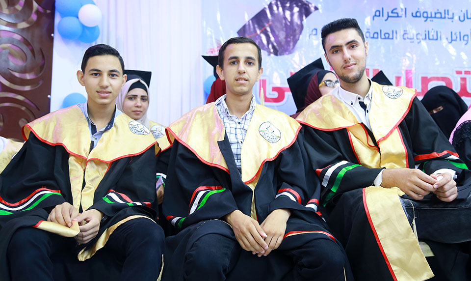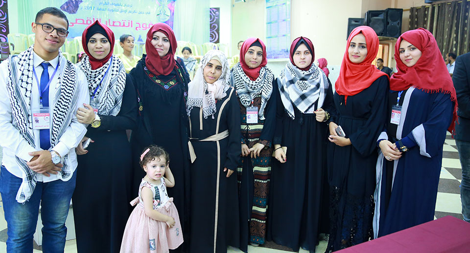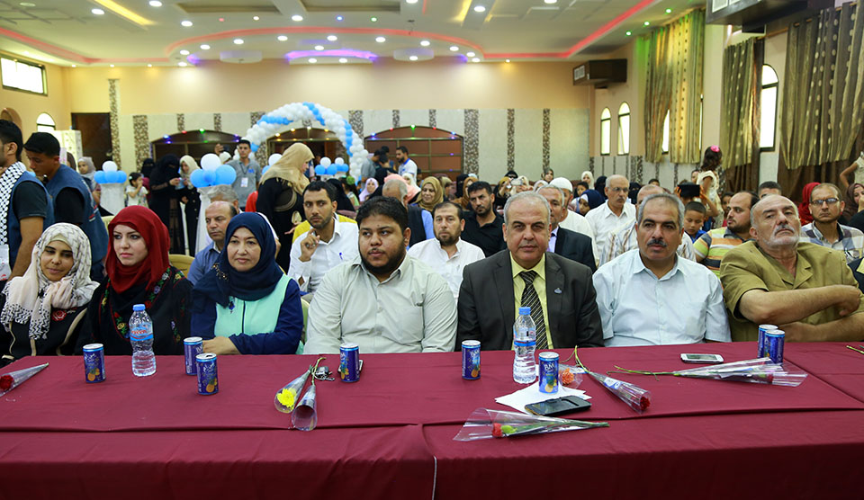 رفح- صالة قصر الشوق- الأربعاء 09-08-2017- تحت رعاية شركة سوا نت لخدمات النت السلكية والاسلكية، وبالشراكة مع جامعة غزة، وجمعية ساهم للتنمية المجتمعية، حفل تكريم الثانوية العامة- فوج إنتصار الأقصى.