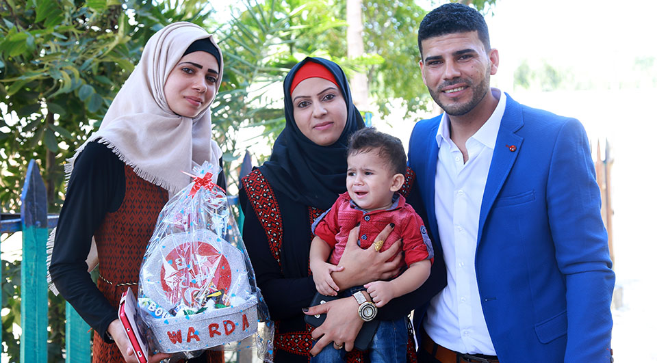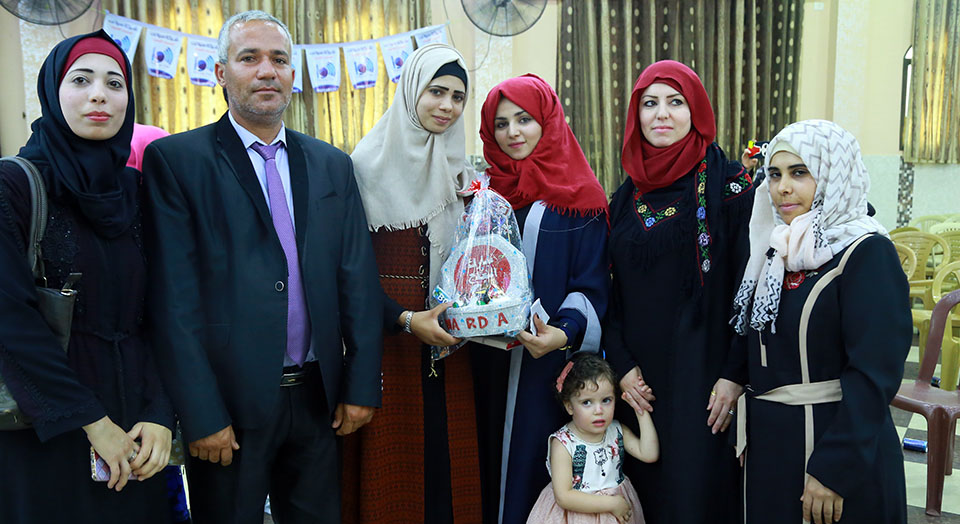 أ. أماني أبو غلوة، أ. مها شاهين، شذى حماد، وردة الأغا ووالدها أ. علي وكريمته السيدة إسلام