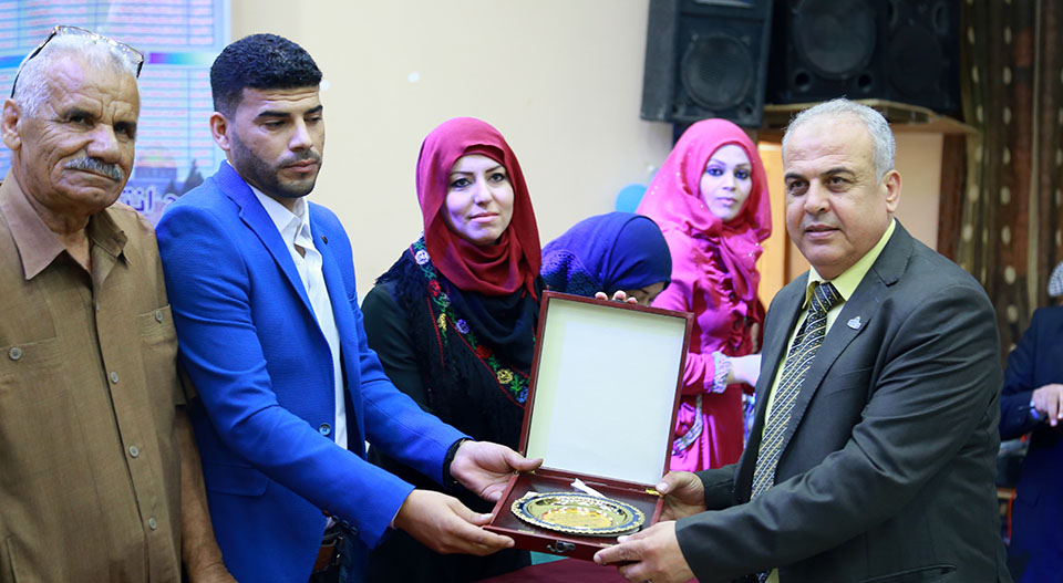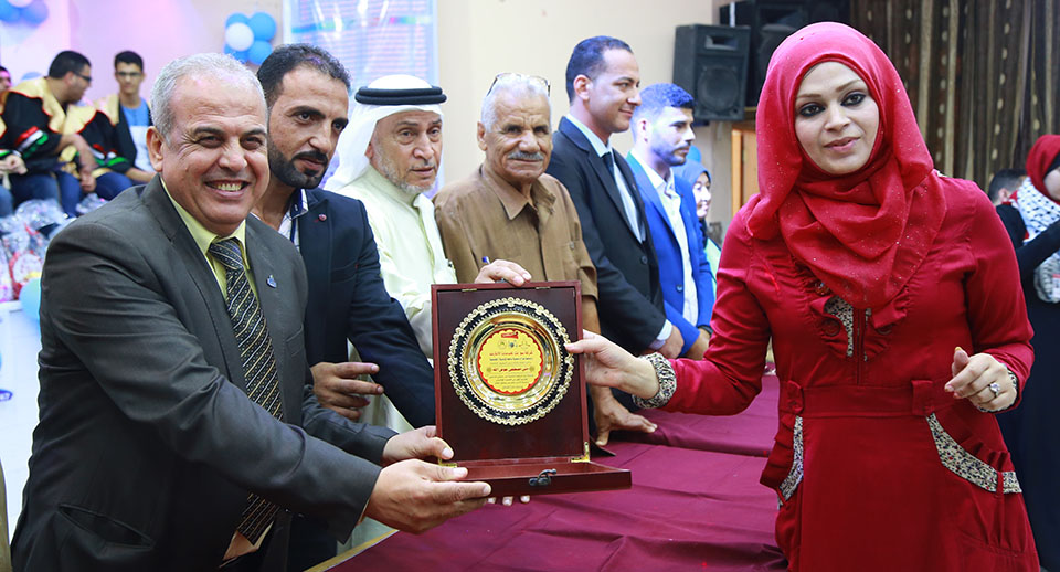 تكريم المعلمة منى مصطفى أبو دقة، أستاذة ومحاضرة بالجامعة الإسلامية سابقاً، تعمل الان في الأونروا، حاصل على الماجستير في الفيزياء، حاصلة على أفضل معلمة في العالم، وعلى المرتبة الأولى في التصويت الإلكتروني لافضل معلمة