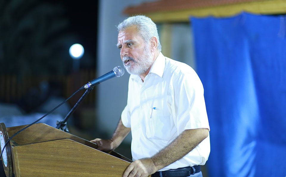 أ. محمود العجرمي النائب الاكاديمي لرئيس جامعة فلسطين متحدثا باسم الجامعة المستضيفة للاحتفال