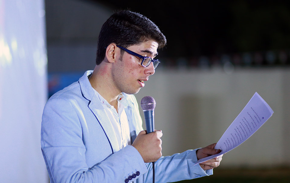 عريفة الحفل إيمان وليد الأغا، د. صلاح رمضان الأغا، أ. أرسلان كامل الأغا، أ. ياسر محمد الأغا