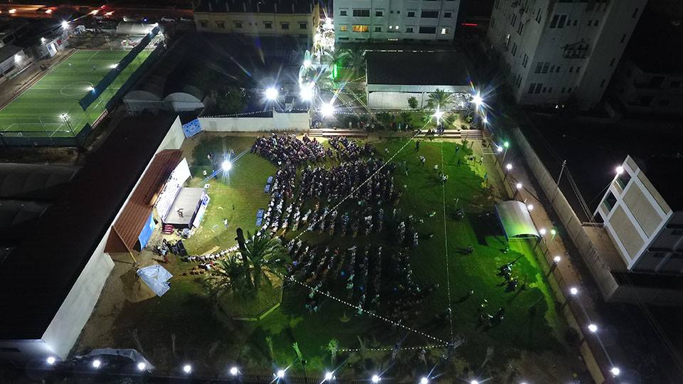تصوير جوي لاحتفال عائلة الاغا في جامعة فلسطين 201