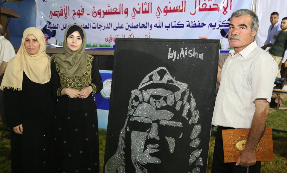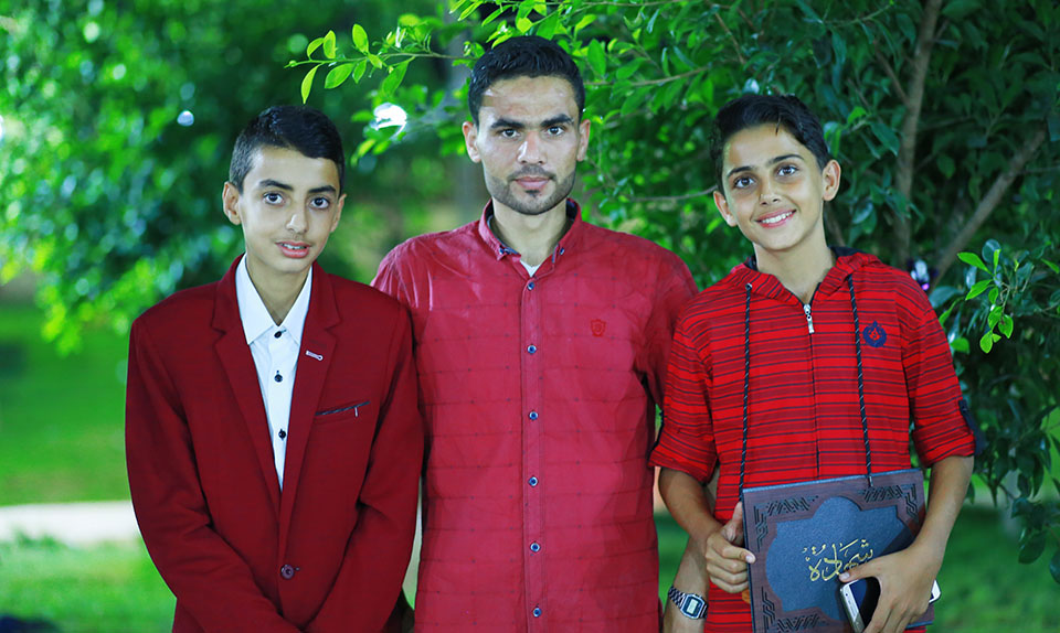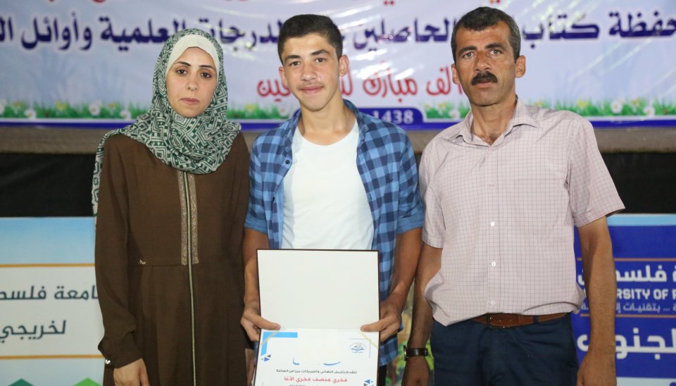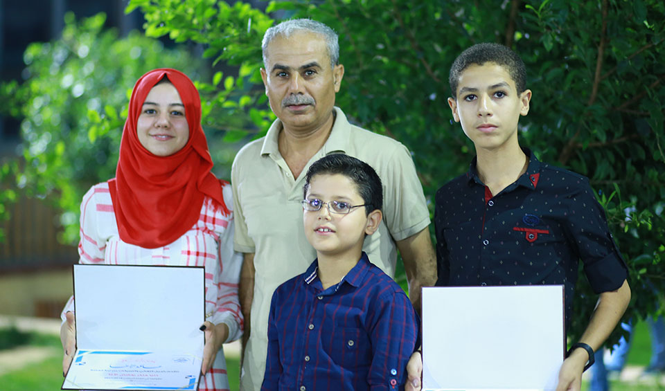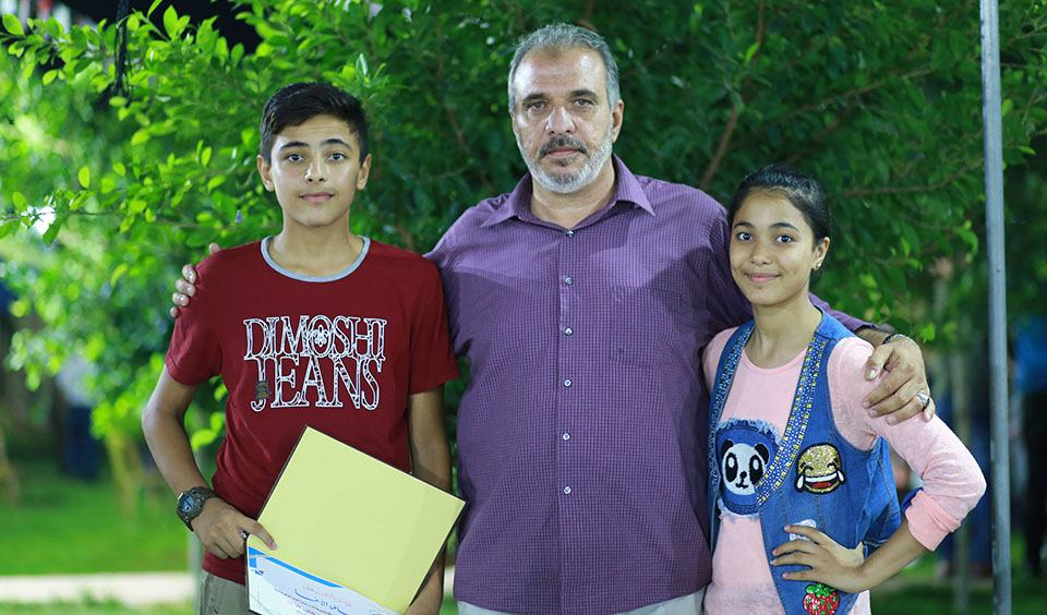 براء منار طياب الأغا وشقيقته ولاء ووالدهما أ. منار، أ. ياسر محمد الأغا