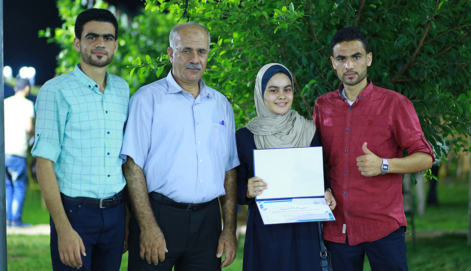 رولا سمير حمدي الأغا ووالدها أ.سمير الأغا وشقيقها محمد