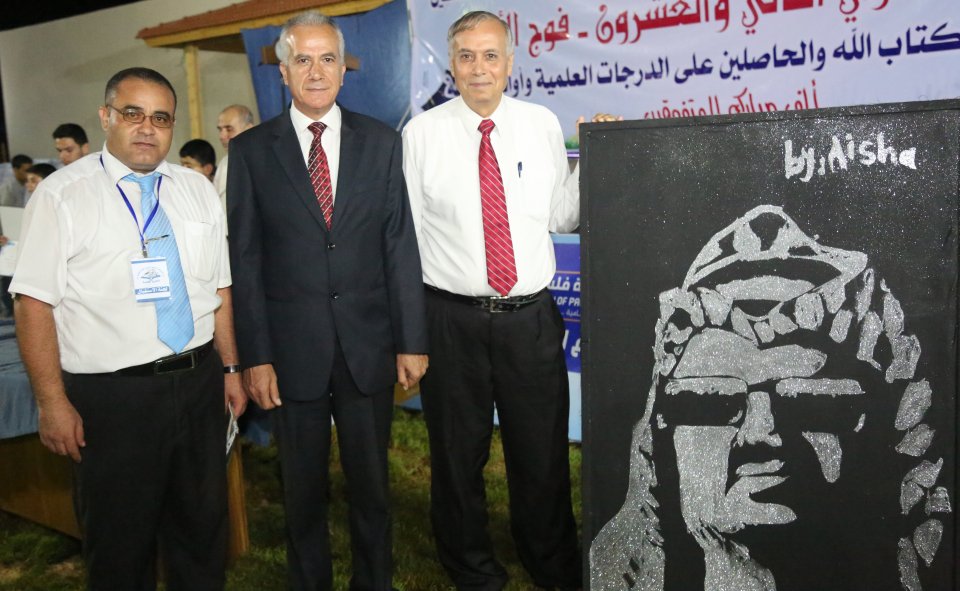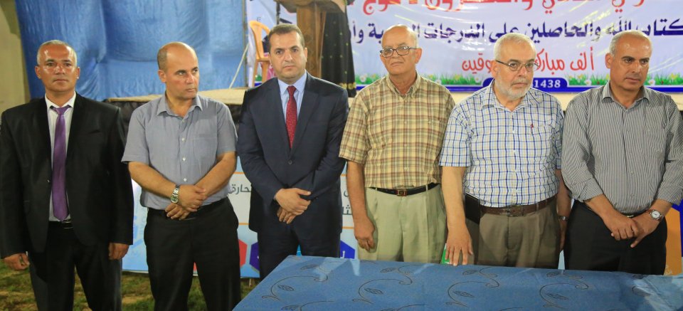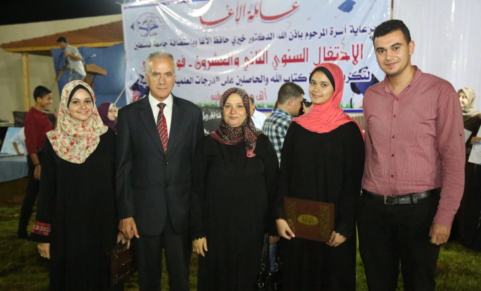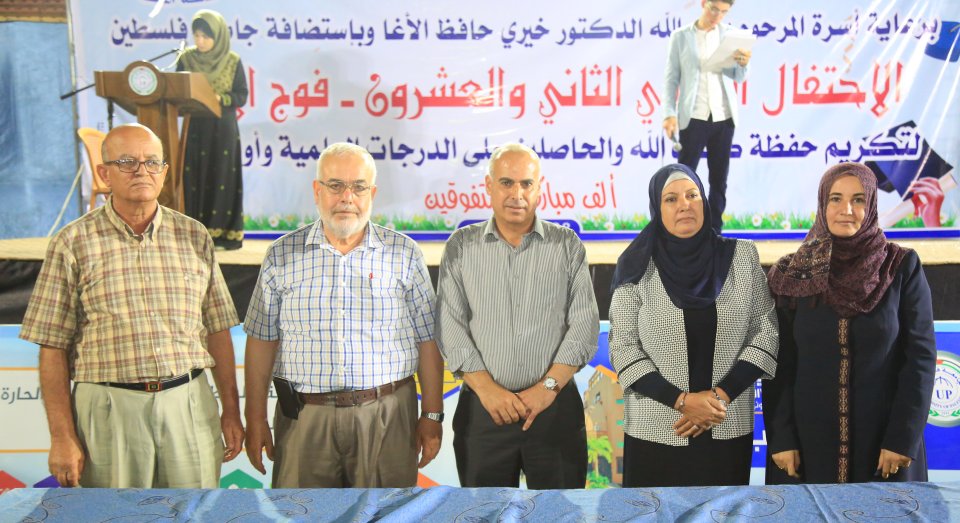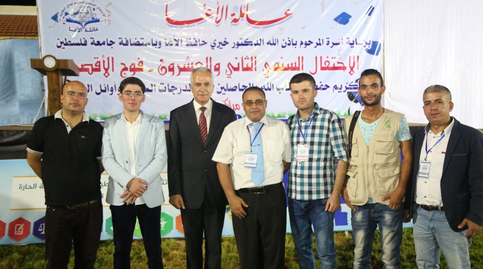 لجنة التكريم/ د. مروان سليم، د. سامي إبراهيم، د. وفيق حلمي، د. نادر أبو شرخ، د. أيمن صالح الأغا، السيد علي فتحي الأغا