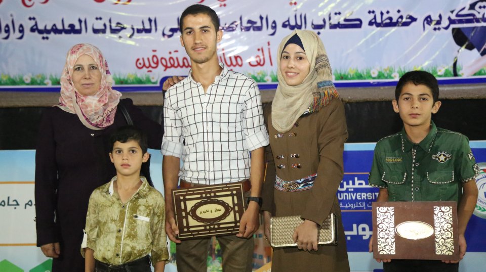 روان يوسف الأغا ووالدتها وشقيقها وشقيقتها