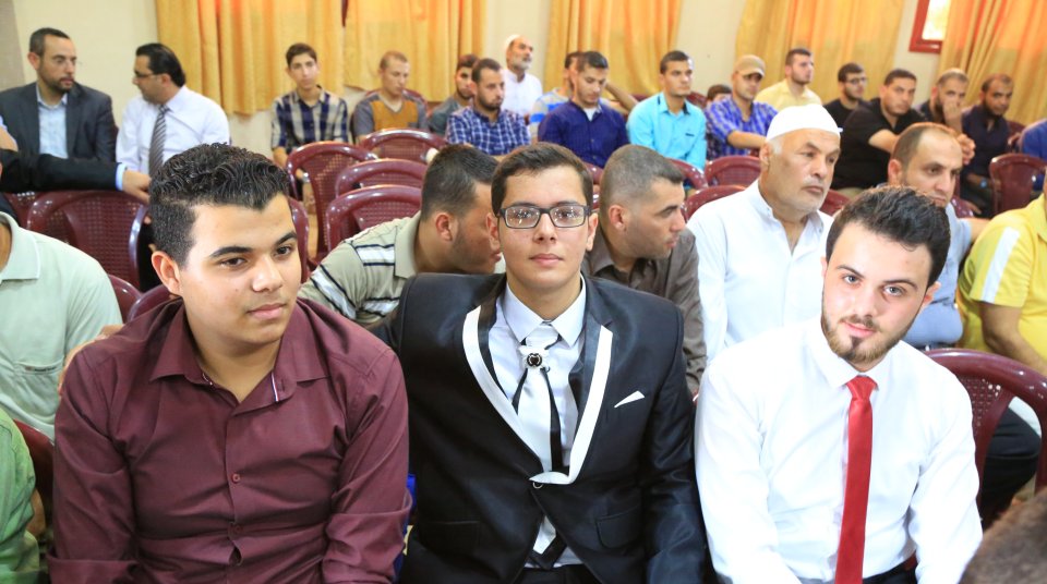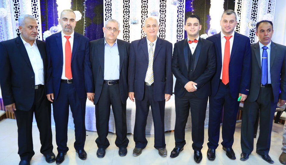 د. محمد عبدالجواد(شقيق العريس)، أ. أحمد محمد قاسم(والد العروس)،العريس وعمه، أ. حماد الرقب، الشيخ علي الحلاق