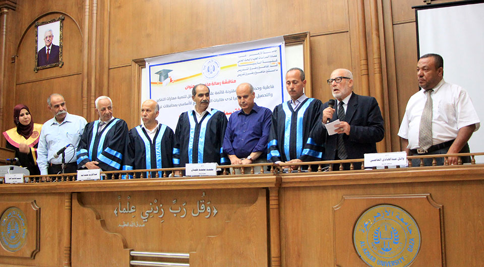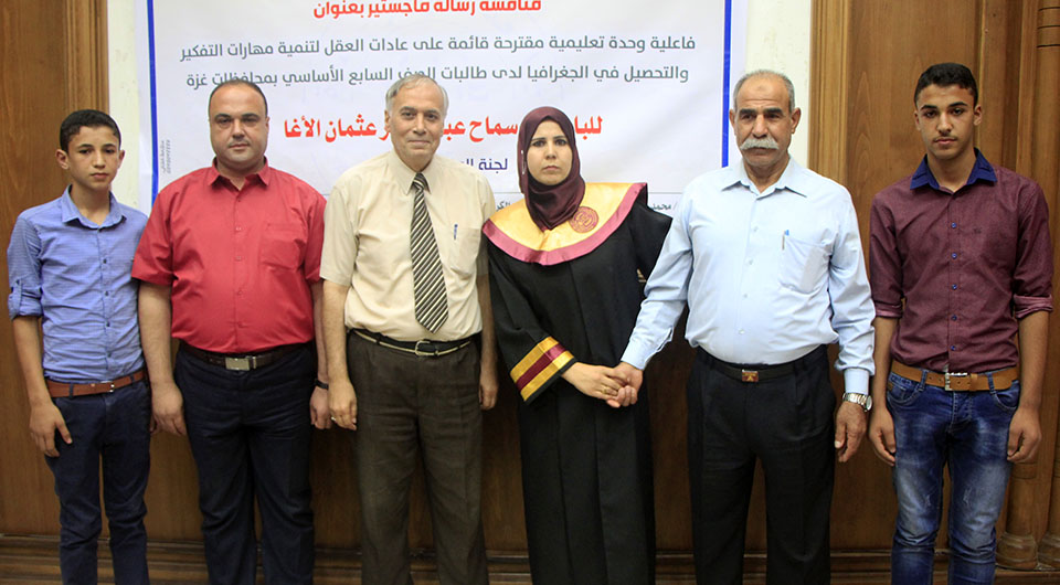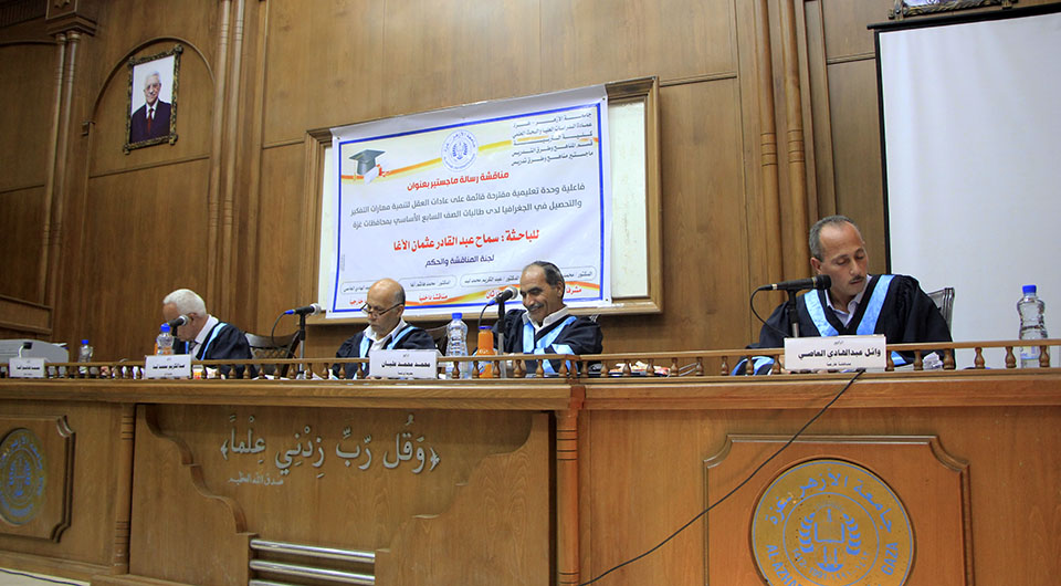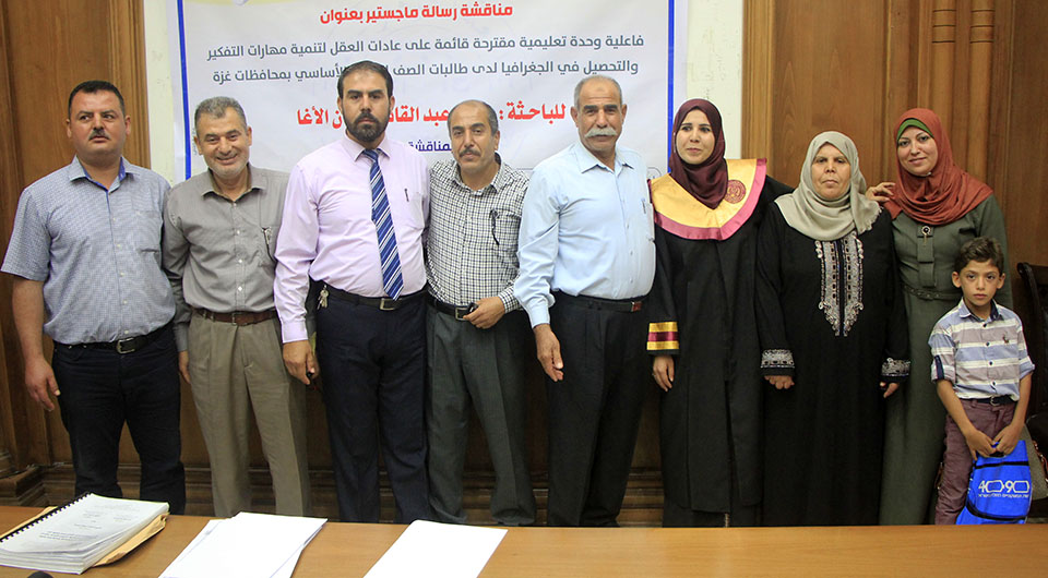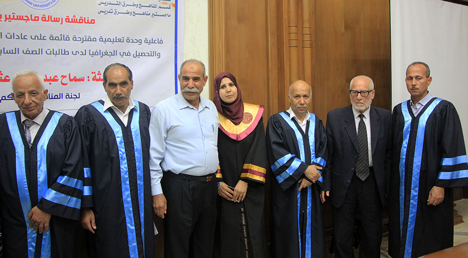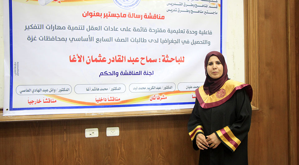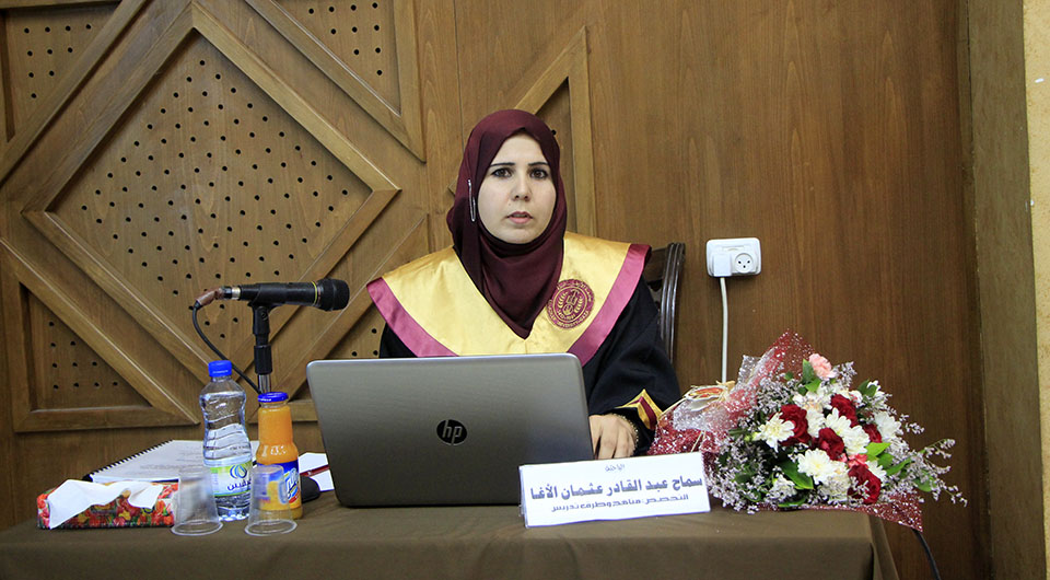قاعة بيسان- جامعة الأزهر- غزة- الأربعاء الموافق 23-08-2017 ، الباحثة سماح عبدالقادر عثمان الأغا، تنال درجة الماجستير في المناهج وطرق التدريس