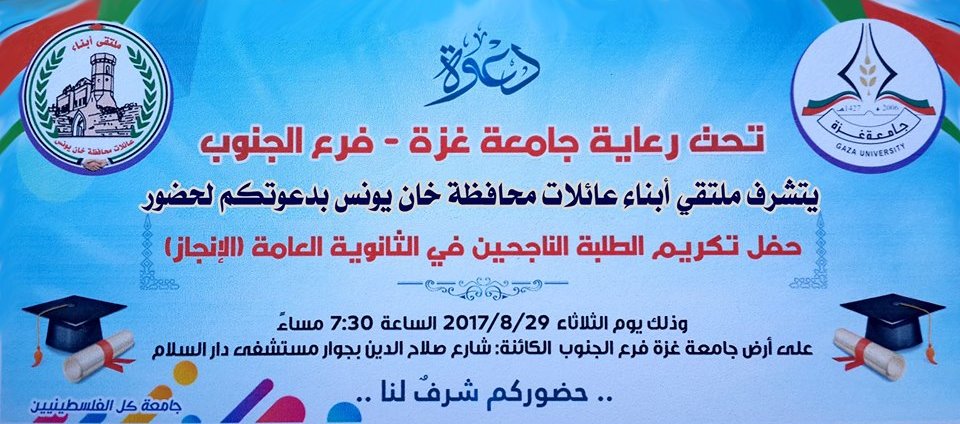 الرئيسة/متفرقات/دعوة لحضور حفل تكريم الطلبة الناجحين في الثانوية العامة (الإنجاز) متفرقات دعوة لحضور حفل تكريم الطلبة الناجحين في الثانوية العامة (الإنجاز) تاريخ النشر : الإثنين | 28-08-2017 | 02:59 5342 يمكنك تلقي أحدث الأخبار أول بأول بانضمامك لإحدى مجموعات الواتساب الخاصة بالعائلة من خلال الضغط هنـا اظهر المزيد