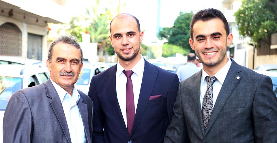 العريس يتوسط الشقيقان د. إياد، م. أحمد