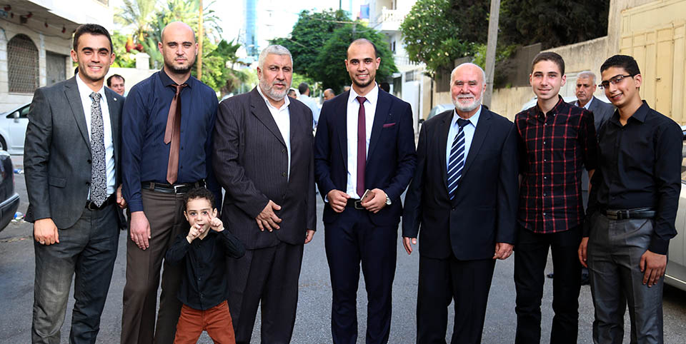 أ. بيان سليم، الحاج تحسين عيد، أ. قاسم حلمي ، العريس ، والد العريس، م. حمادة شعت، ا. أحمد (شقيق العريس)