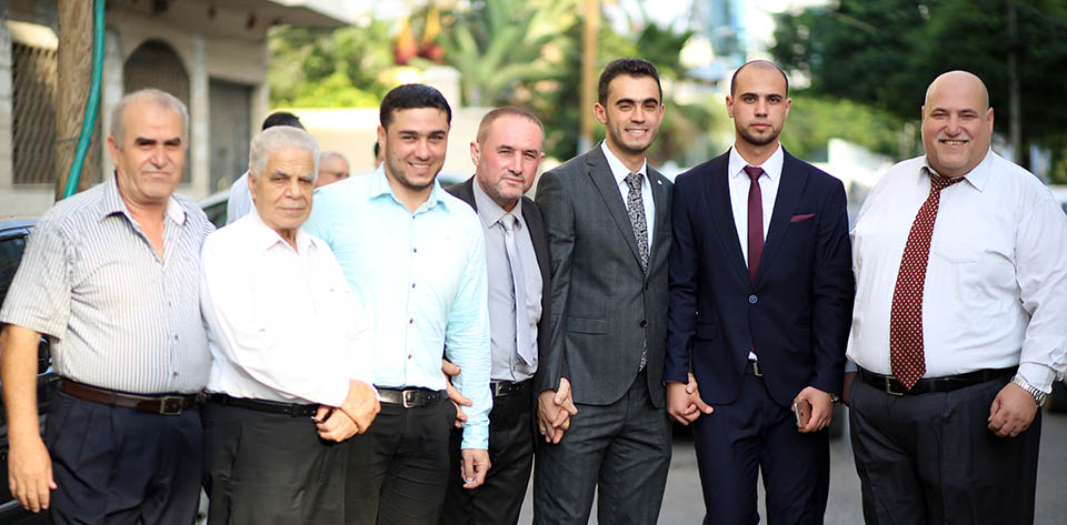 د. محمد حمتو الأغا، العريس، الحاج عبدالمجيد الأغا(خال العريس)، أ. يحيى الأغا(زوج خالة العريس)، أ. علاء يحيى