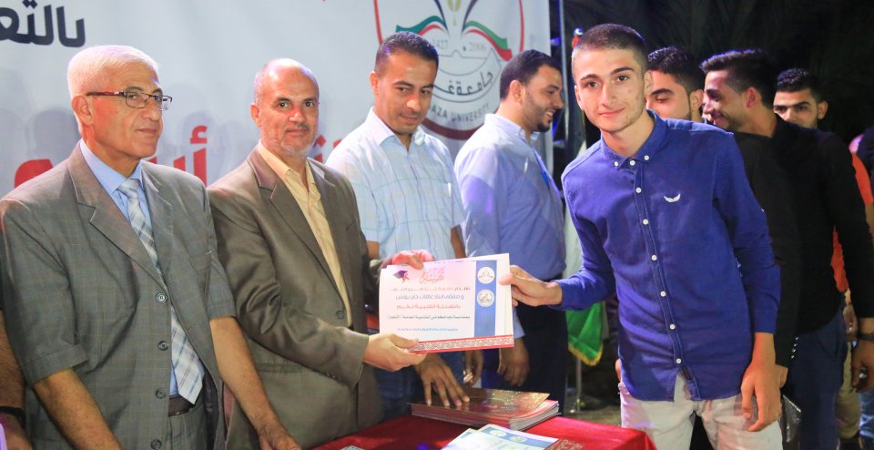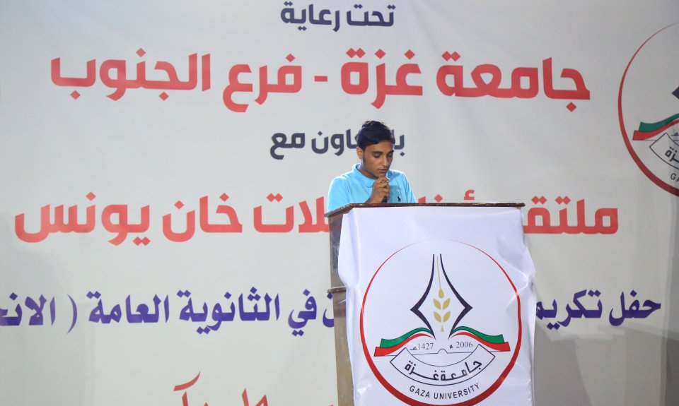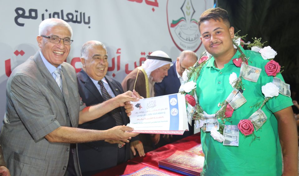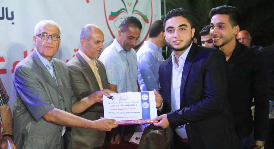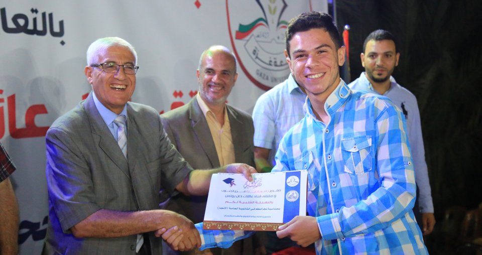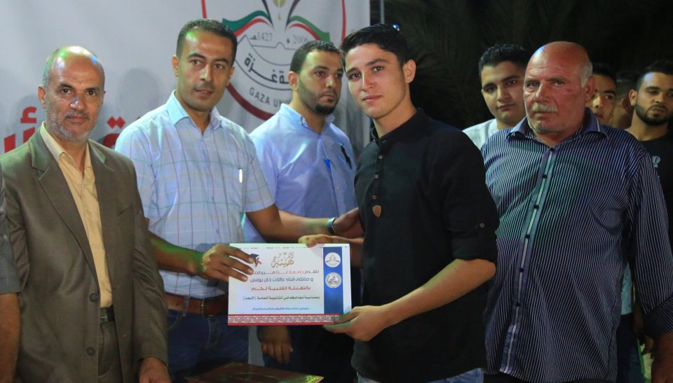 احتفلت جامعة غزة فرع الجنوب وملتقى العائلات بطلبة الثانوية العامة، بحضور محافظ محافظة خان يونس د. أحمد الشيبي، وأ.د عبد الجليل صرصور رئيس جامعة غزة، وعدد من وجهاء العائلات والمخاتير، والشخصيات السياسية والاعتبارية.