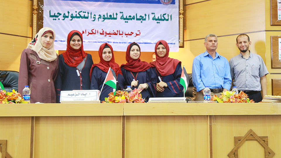 خان يونس- الكلية الجامعية للعلوم والتكنولوجيا الأربعاء 05-09-2017 تم بحمد الله وتوفيق مناقشة مشروع تخرج للطالبة دانا أرسلان الأغا تخصص تغذية وتكنولوجيا غذا بعنوان تاثير القلي على بعض انواع المواد الكيميائية والفيزيائية للزيوت، بتقدير عام إمتياز، وألف مبارك.