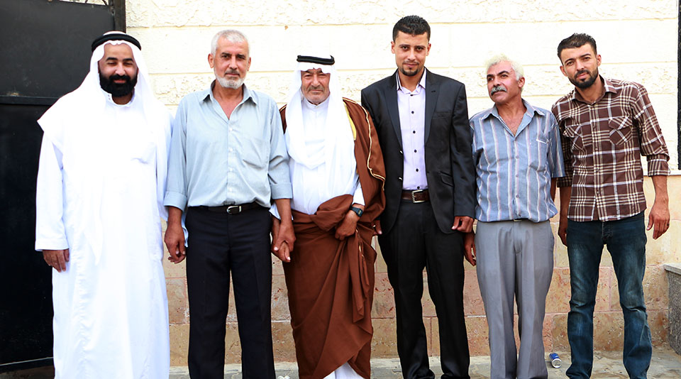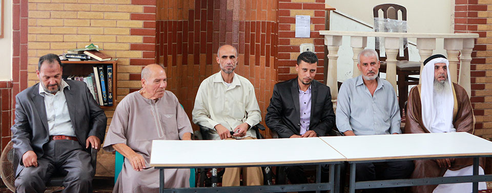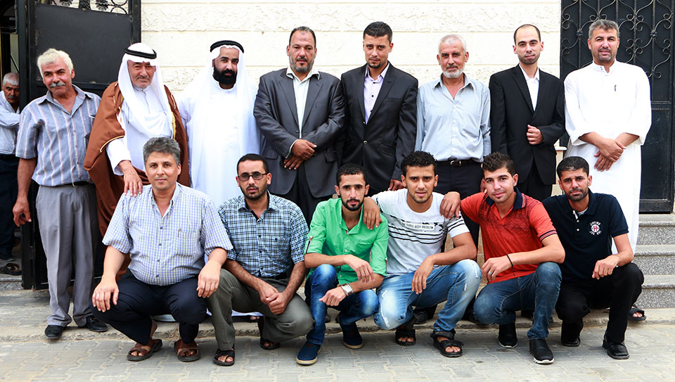 مسجد طيبة السطر الغربي خان يونس الخميس الموافق 21-09-2017 خطوبة أ. فادي ناصر الأغا الى صاحبة الصون والعفاف الأنسة ابتسام أشرف رفقي جبارة الفرا، والف مبارك.الواقفون: أ. بهاء رمضان(ابن عمة العريس)، أ. محمد عوني(زوج شقيقة العريس)، والد العريس، العريس، والد العروس، أ. صائب الفرا، السيد مهدي(خال العريس)