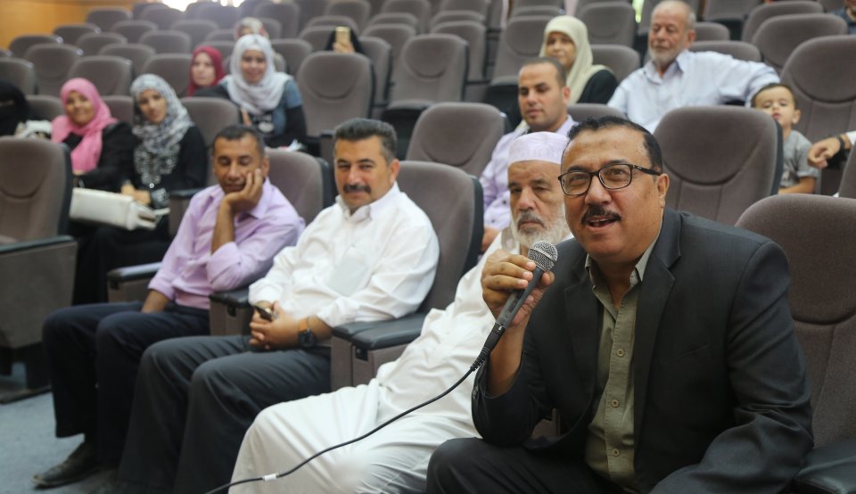 من داخل قاعة المؤتمرات بالكلية الجامعية للعلوم والتكنولوجيا