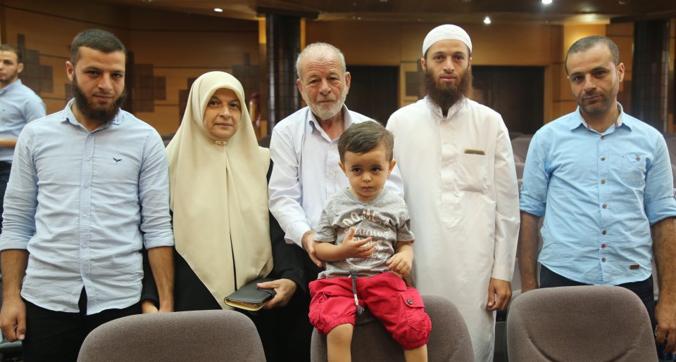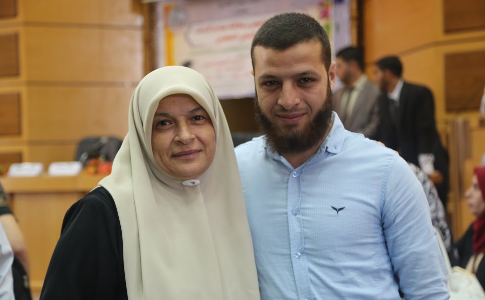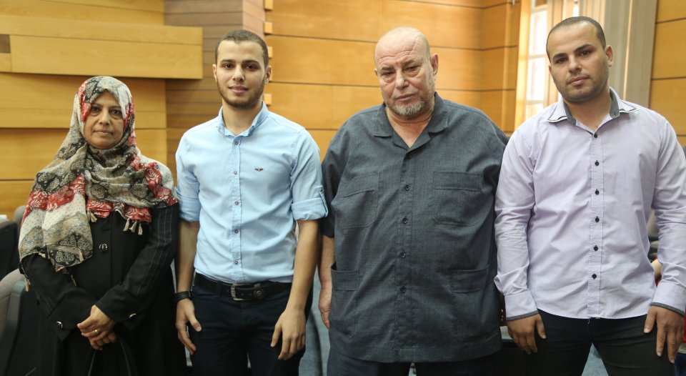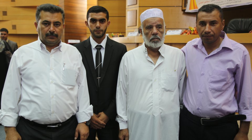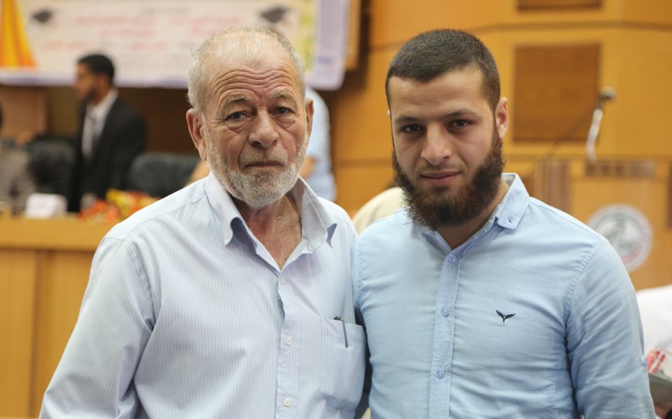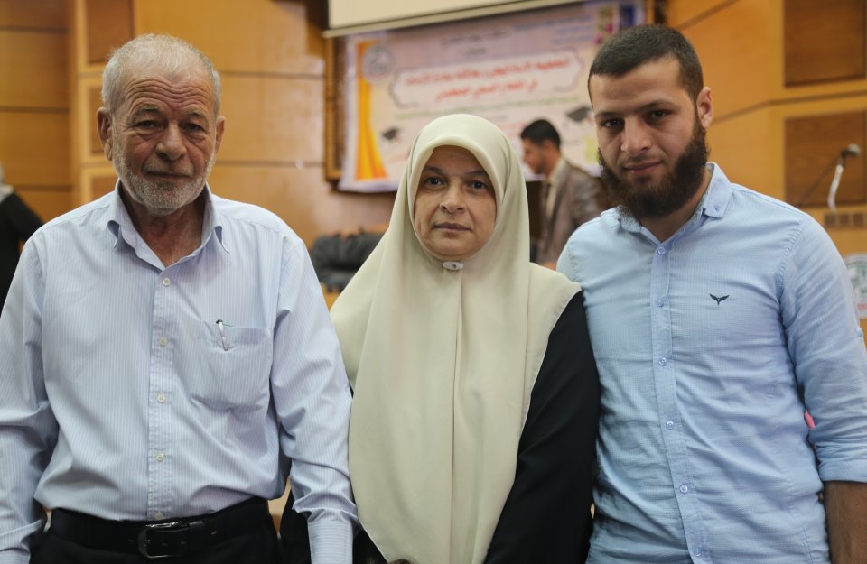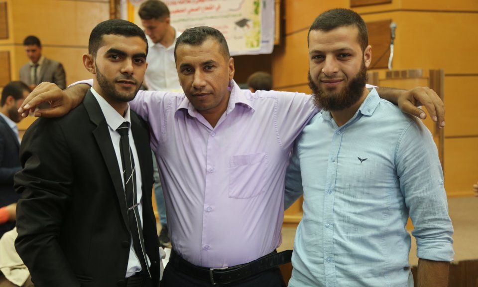 الخريج علي عبدالحكيم الأسطل برفقة والده وجده الحاج خضر صقر وخاله ربيع صقر