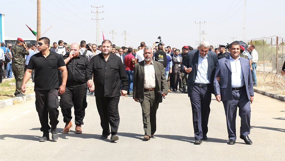 يحيى السنوار، اسماعيل هنية، عضوي الوفد المصري، فتحي حماد