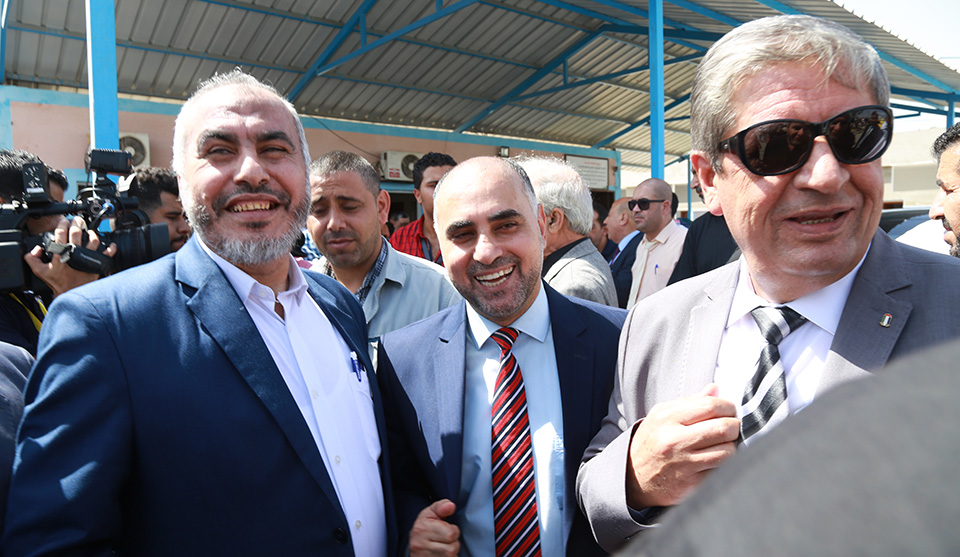 وعلت زغاريد النسوة والأهازيج التي تعبر عن أرتياحهم لقدوم الوفد الحكومي الكبير الى قطاع غزة المحاصر منذ أكثر من عشر سنوات.