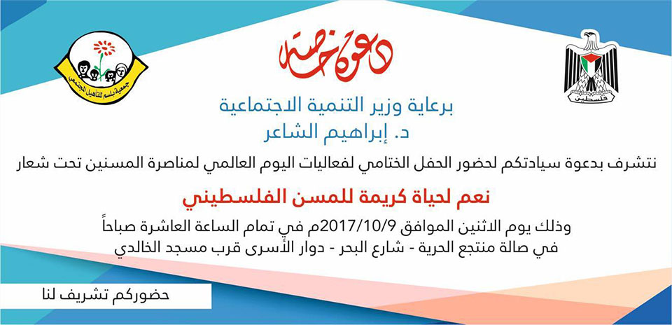 غزة- منتجع الحرية- الإثنين 09-10-2017- الحفل الختامي لفعاليات اليوم العالمي لمناصرة المسنين
