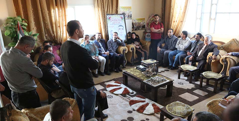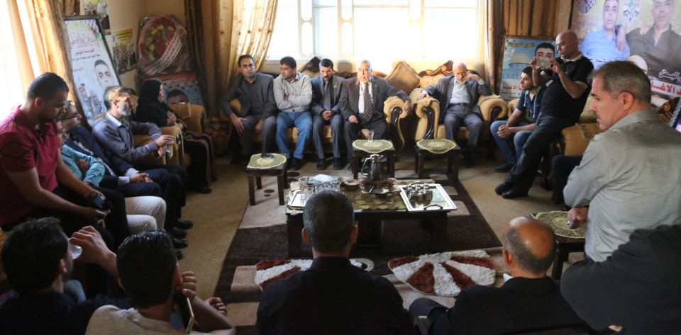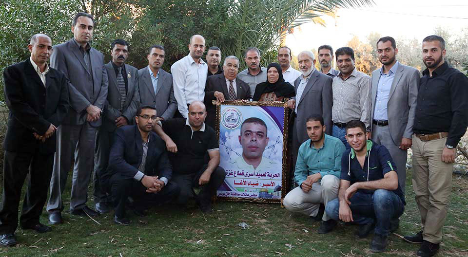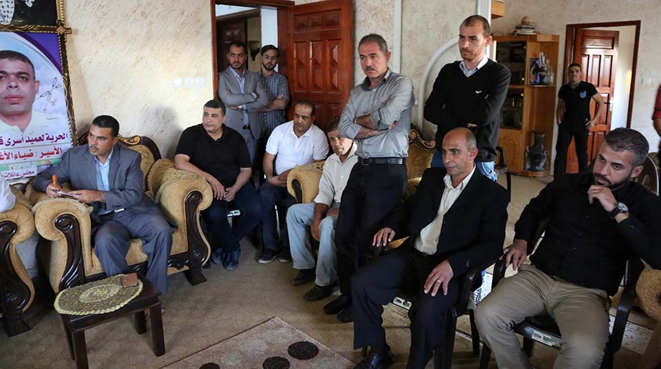 منزل الأسير ضياء زكريا الأغا- السطر الغربي- الأحد الموافق 15-10-2017 زار وفد من مجلس عائلات محافظة خان يونس يضم أعضاء اللجنة التنفيذية والمجلس العام وبمشاركة محافظ خان يونس د. أحمد الشيبي والمستشار: علي الفرا ، منزل عميد أسرى قطاع غزة الأسير: ضياء زكريا الأغا بمناسبة دخوله العام الـ26 في الأسر بسجون الاحتلال الاسرائيلي .